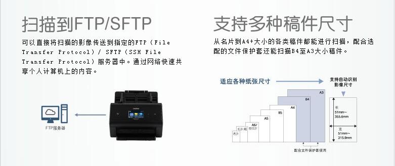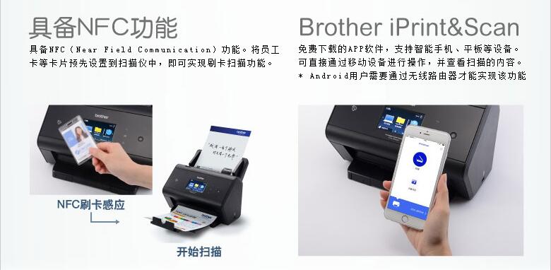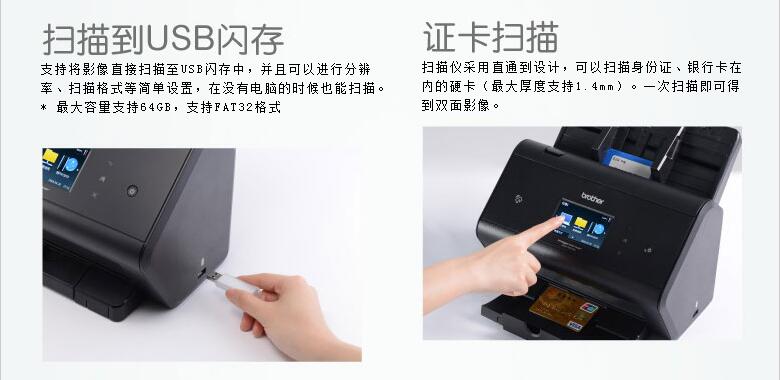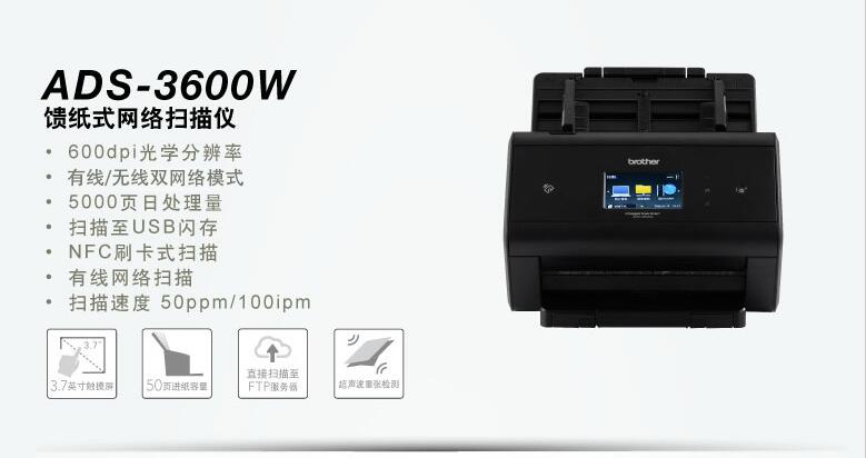 兄弟ADS-3600W高速馈纸式彩色双面扫描仪 有线无线双网络模式