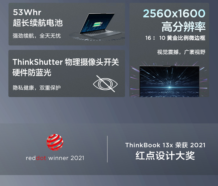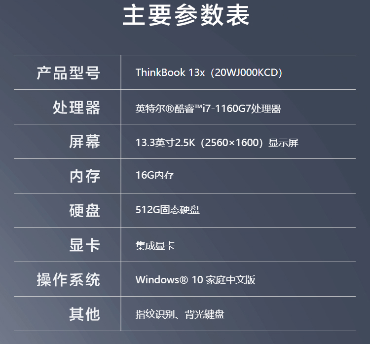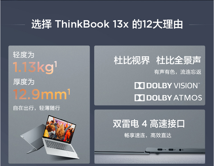 联想ThinkBook 13x 高端超轻薄笔记本 英特尔Evo平台 13.3英寸 (i7-1160G7 16G 512G 2.5K全面屏)