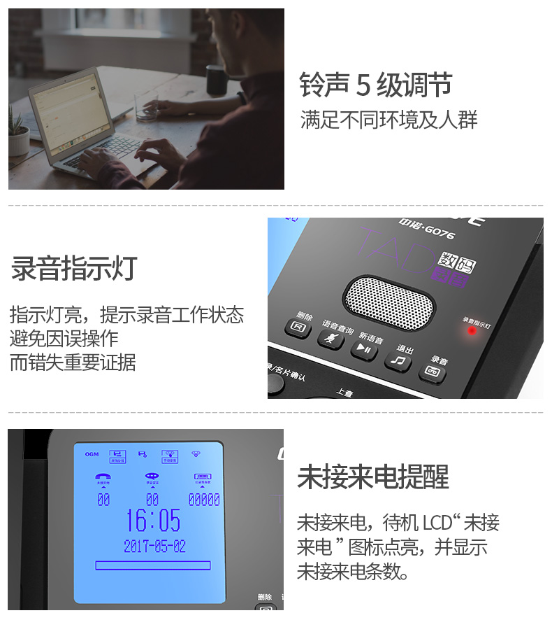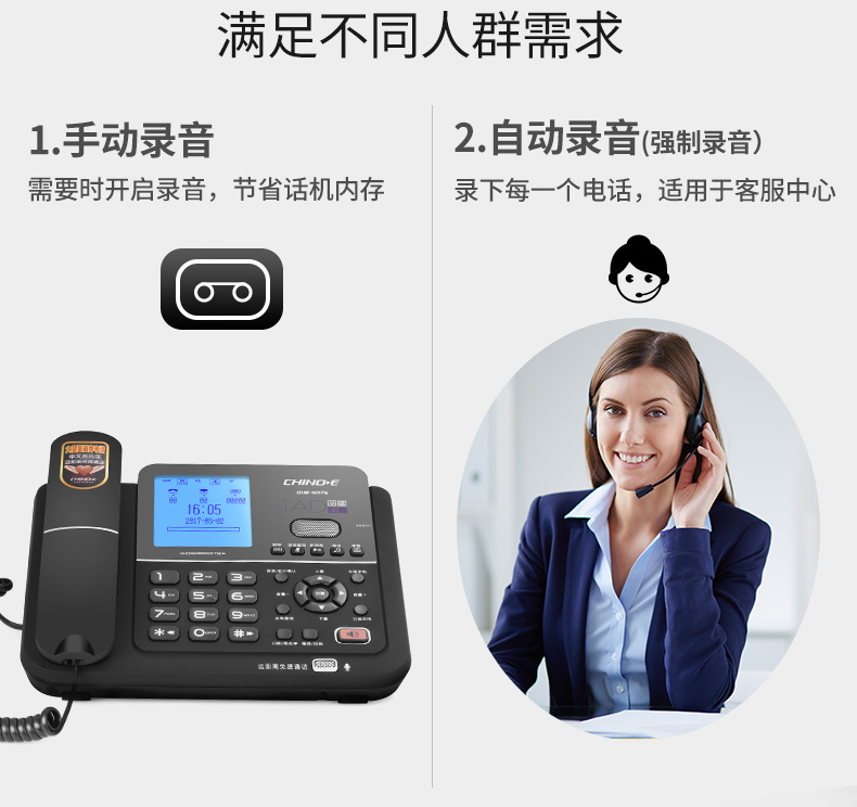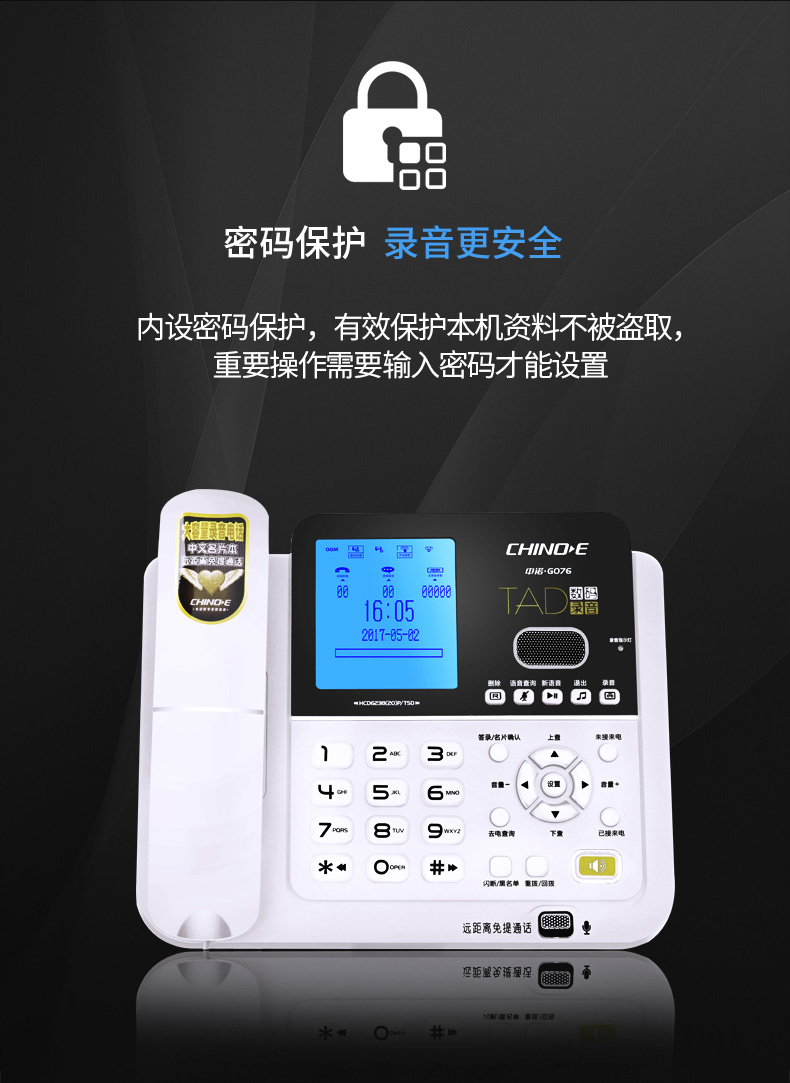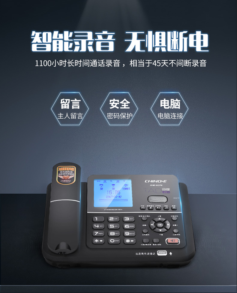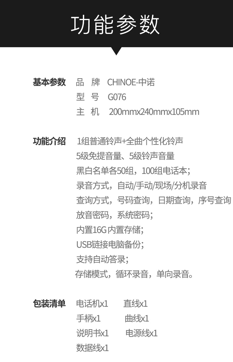 中诺 录音电话机 固定 座机 电话 自动手动录音 电话机 内置16G卡 连接电脑管理 G076雅士黑