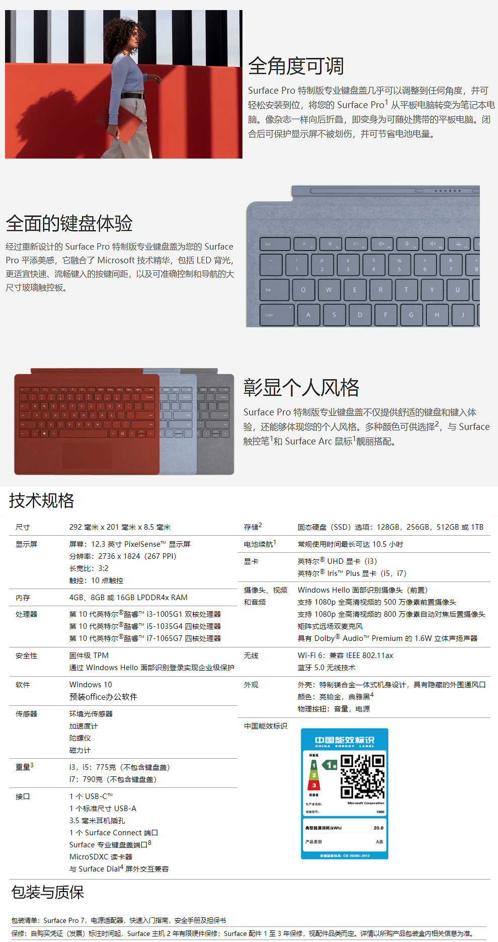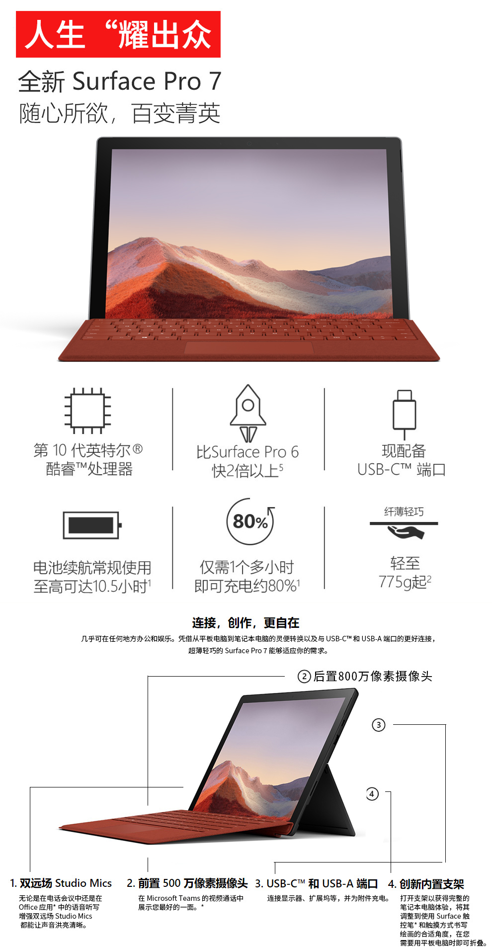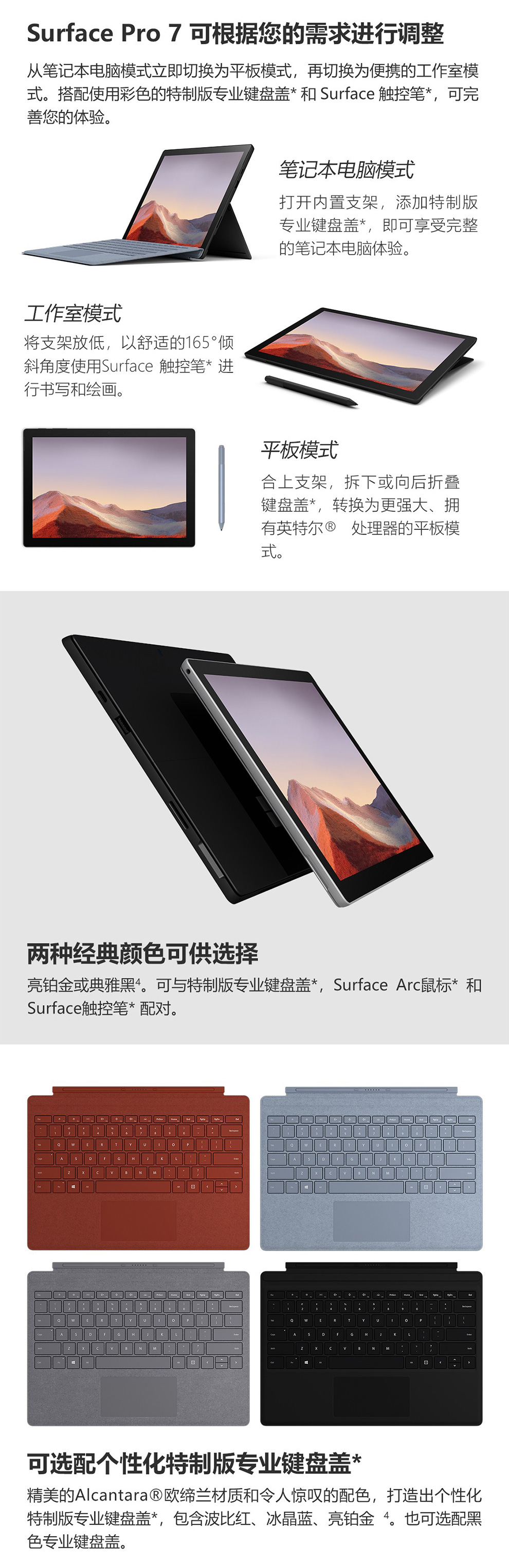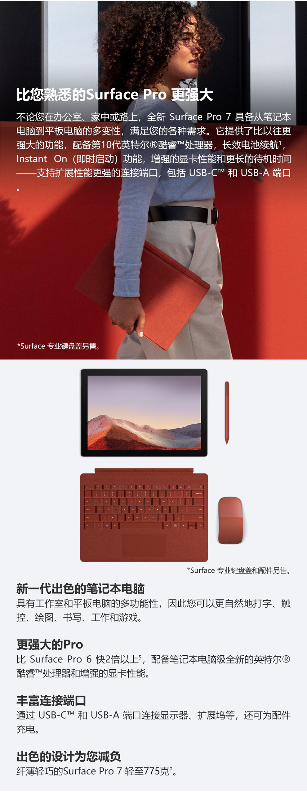 微软(Microsoft)全新 Surface Pro 7 二合一平板电脑笔记本办公轻薄商务pro7 【典雅黑】