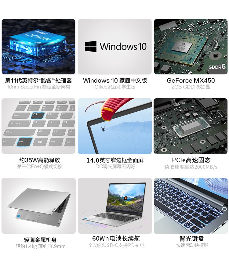 联想威6 2021款英特尔酷睿i5 14英寸高性能游戏 商务办公手提笔记本电脑 (带电脑包、带蓝牙鼠标)
