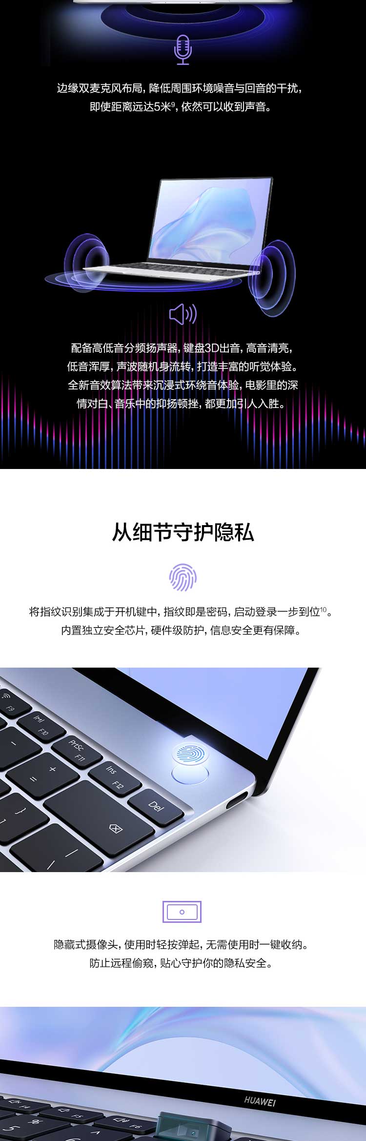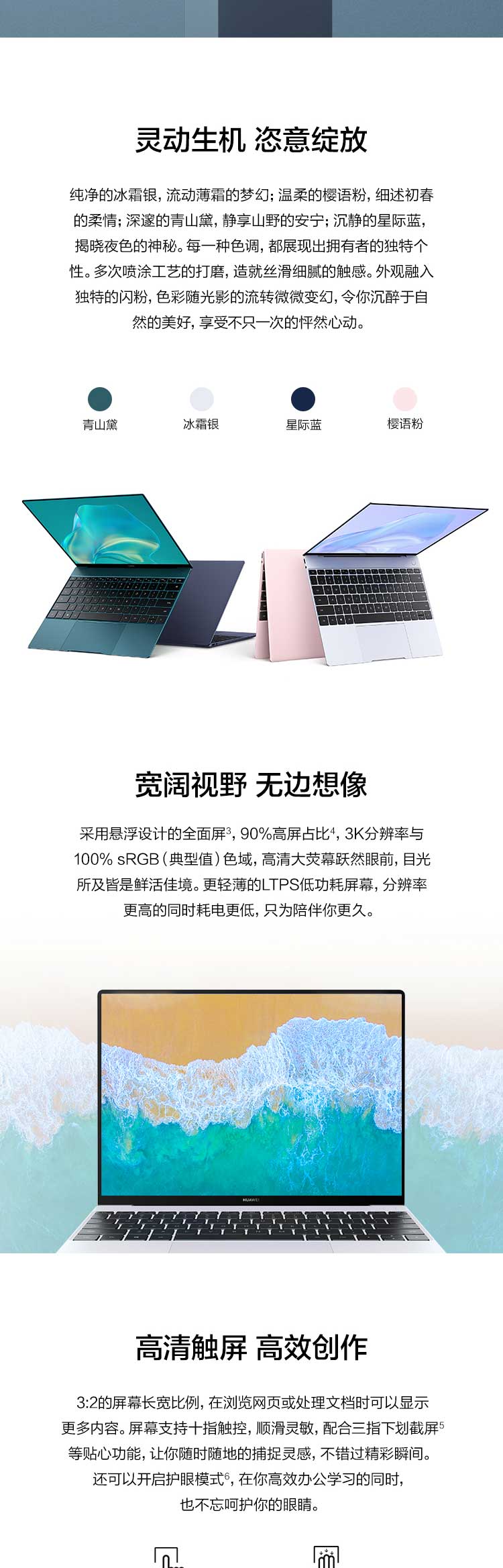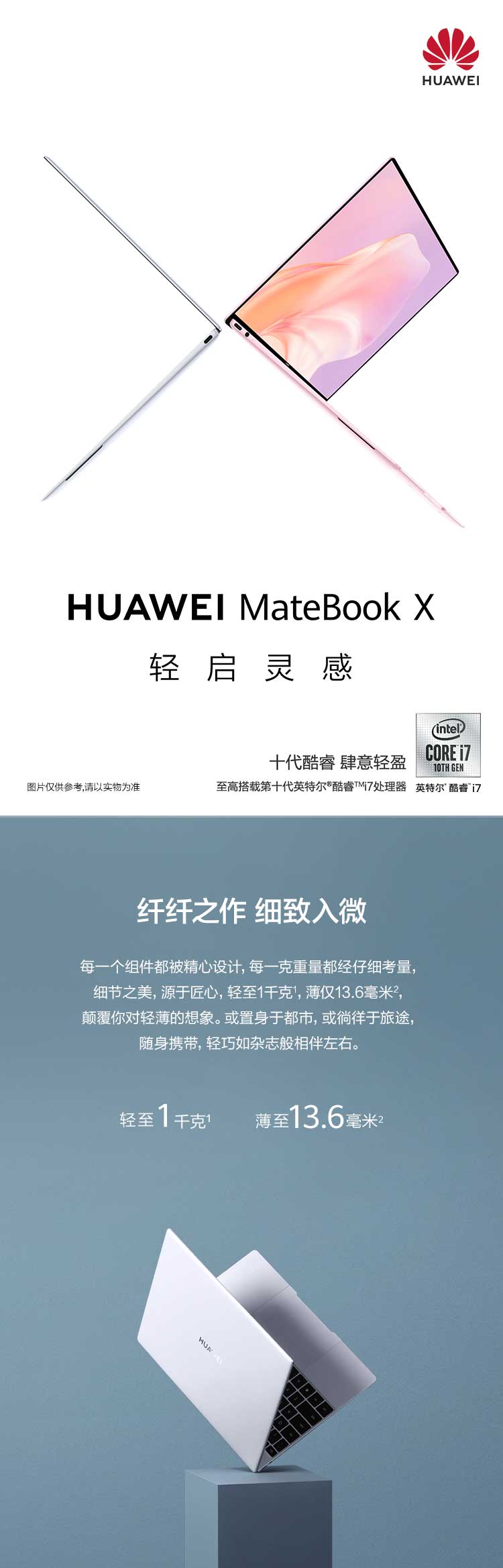 华为 MateBook X 2020 便携式计算机 笔记本电脑13英寸 十代酷睿i5 16G+512G 3K触控全面屏/时尚轻薄本 冰霜银
