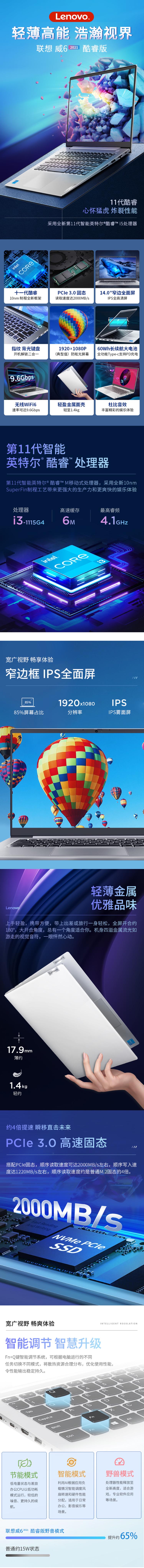 扬天系列 威6-14 i3-1115G4 便携式计算机 笔记本电脑 8G 256G 集显 无光驱 WIN10