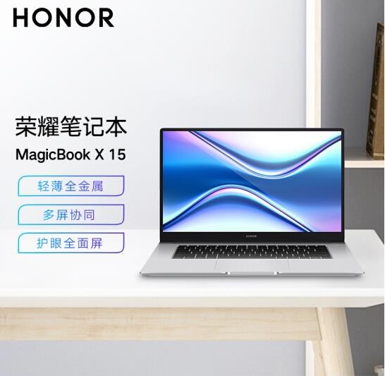 荣耀笔记本 MagicBook X 15 2021 15.6英寸全面屏轻薄笔记本电脑 (i5 10210U 8GB 512GB多屏协同)冰河银
