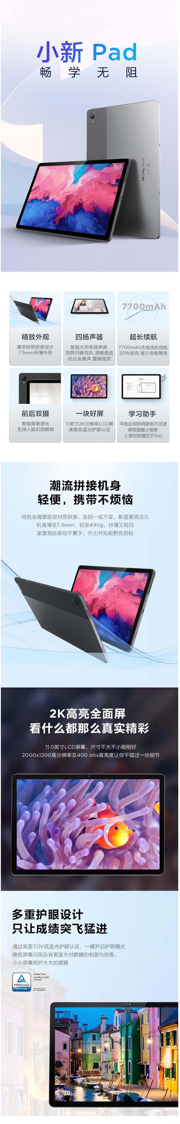 联想(Lenovo)小新Pad 平板式微型计算机 高通骁龙662 11英寸平板电脑 2k全面屏 4GB+64GB 深空灰