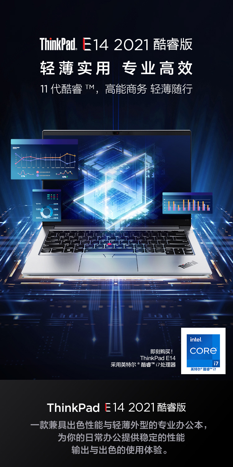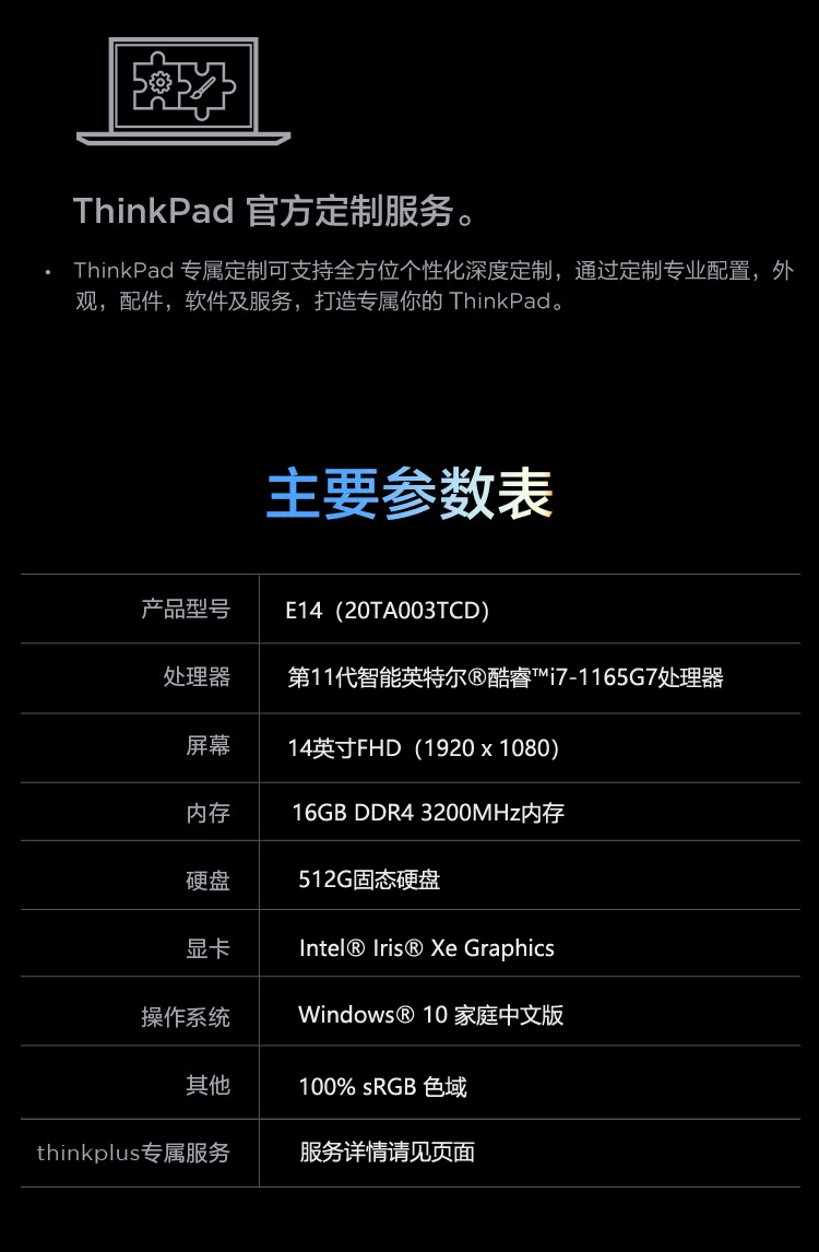 联想ThinkPad E14(3TCD)14英寸笔记本电脑I7-1165G7 16G 512GSSD FHD集显