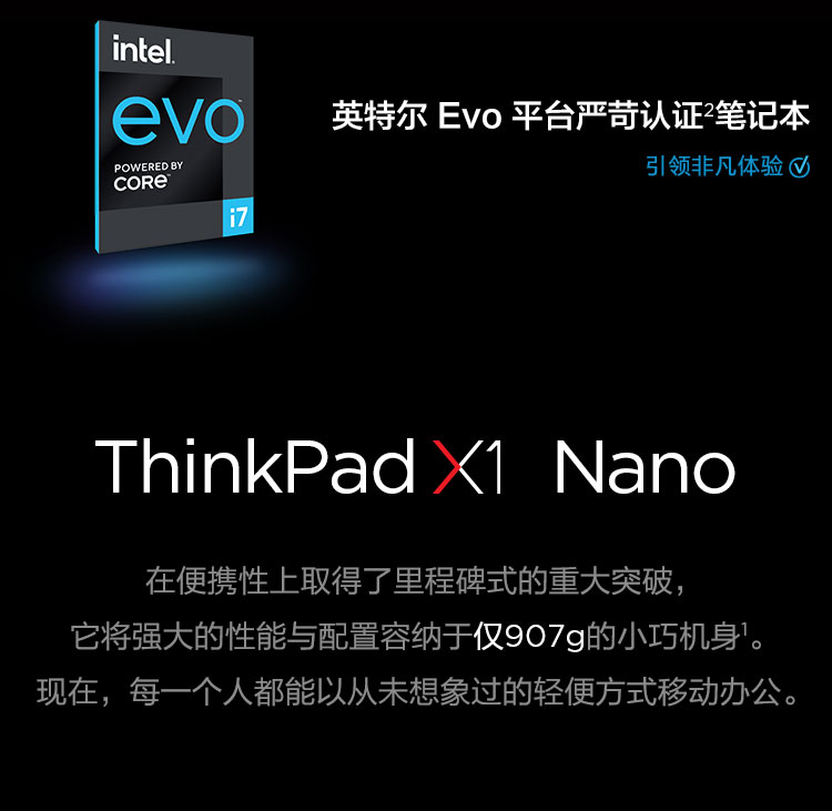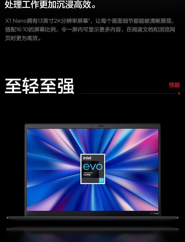 联想ThinkPad X1 Nano 32CD 英特尔Evo平台 13英寸轻薄笔记本电脑 十一代i7-1160G7 16G 1T 2K Win10Pro