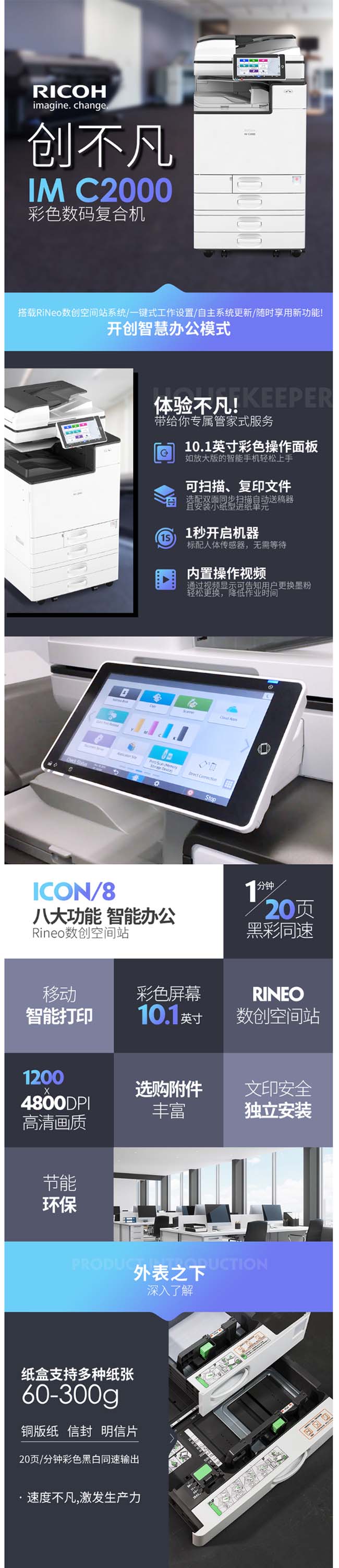 理光(Ricoh)IMC 2500 复印机打印机扫描办公一体机 A3彩色 带输稿器(替代MP C2504) 标配