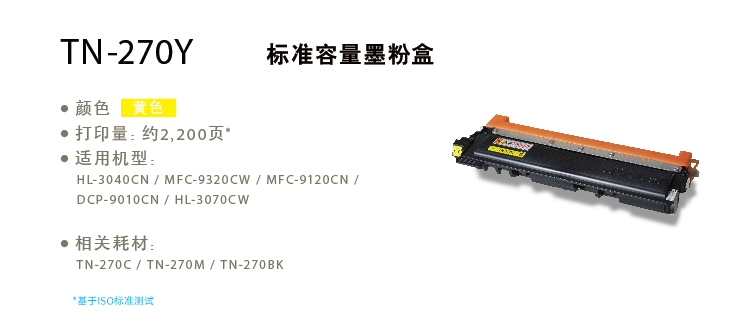 兄弟(brother) TN-270Y 黄色粉仓(适用于DCP-9010CN/HL-3040CN/HL-3070CW/MFC-9120CN/MFC-9320CW)