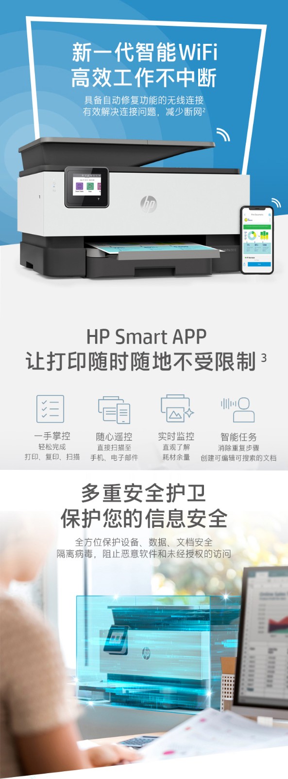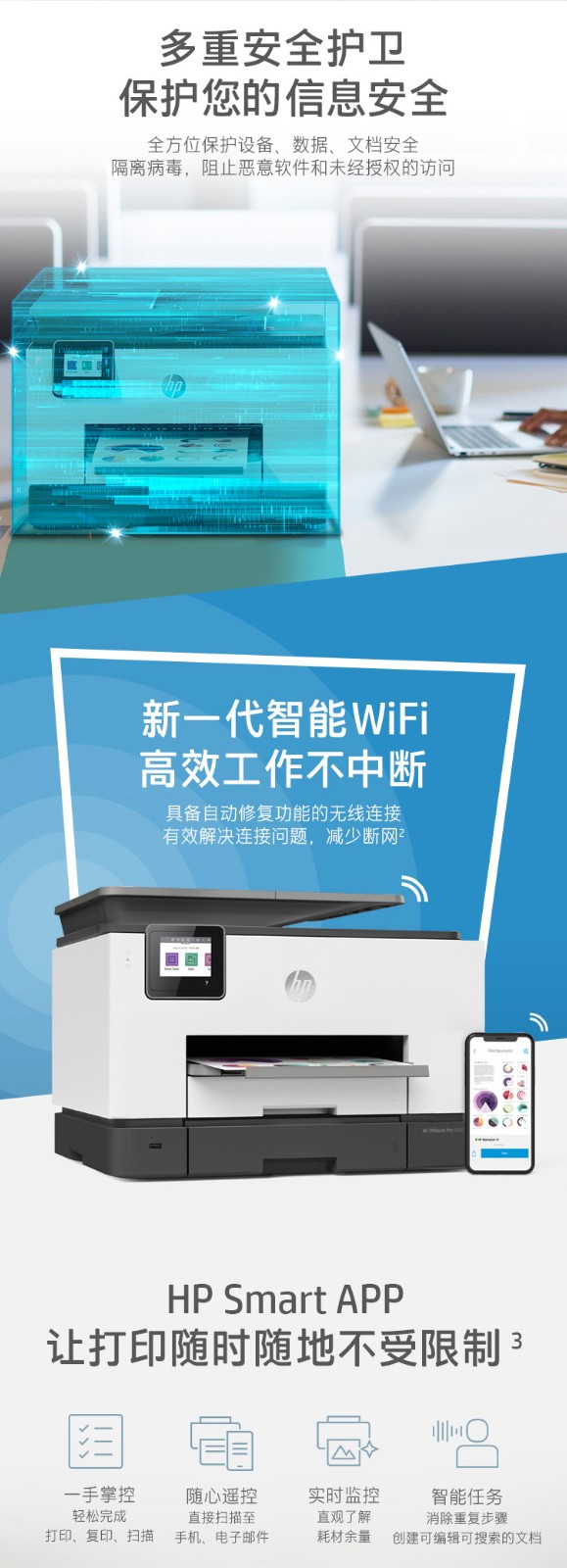 惠普HP 彩色一体机9010 9020喷墨打印机办公商用A4无线自动双面打印复印扫描 9020(专业商用高速款)