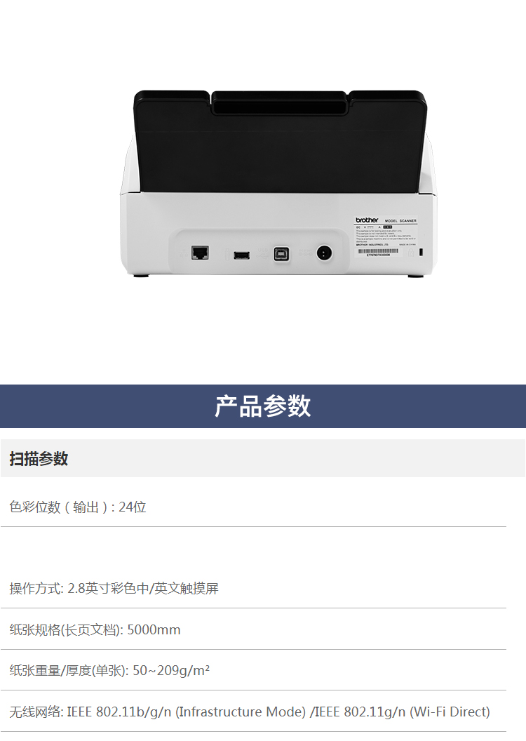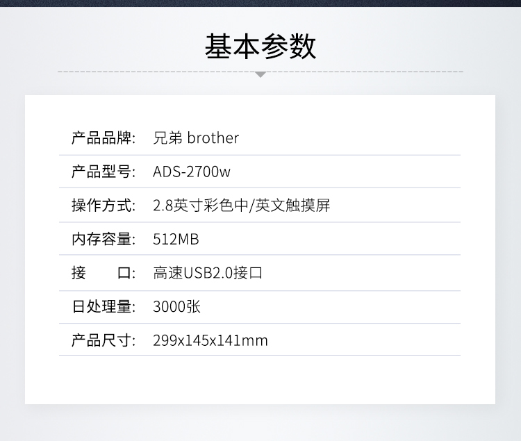 兄弟(brother)ADS-2700w 扫描仪 高速办公扫描仪 有线/无线双网络