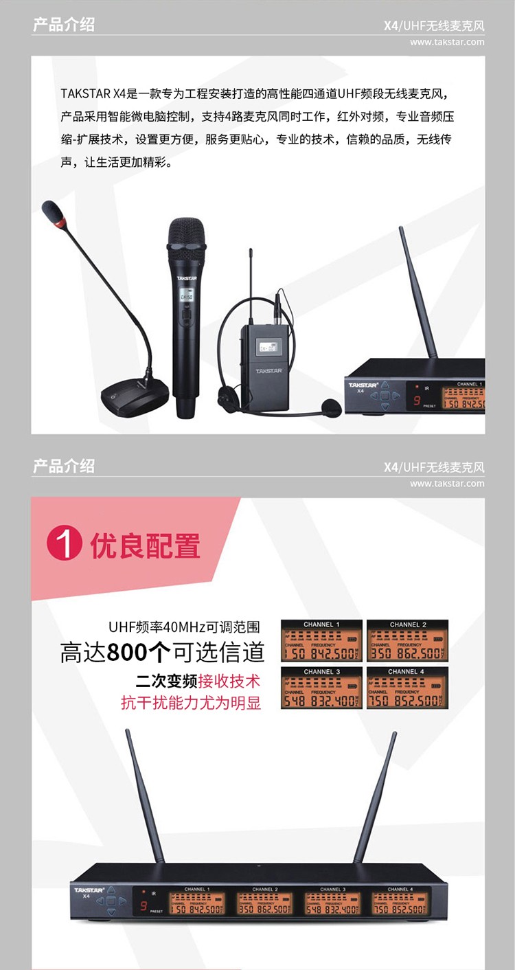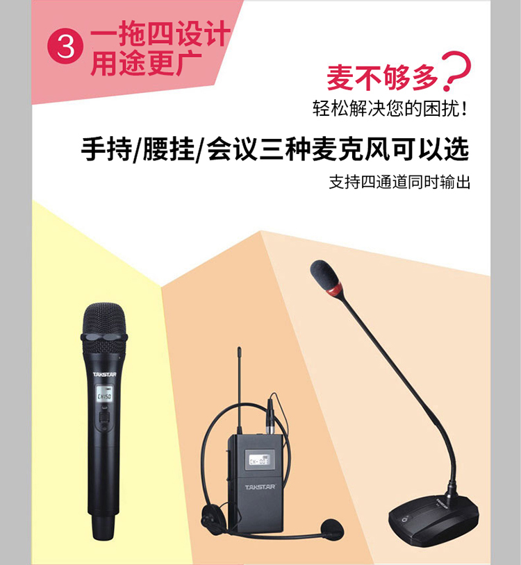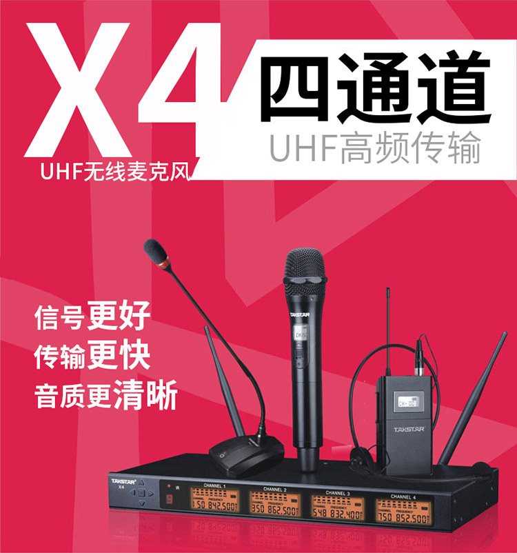 得胜/TAKSTAR X4 麦克 主机 UHF无线一拖四无线麦克风专业手持会议工程KTV演讲主持 1台