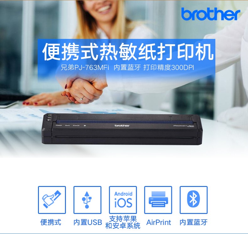 兄弟PJ-763MFi A4幅面便携式打印机蓝牙打印机热敏打印机无需墨盒