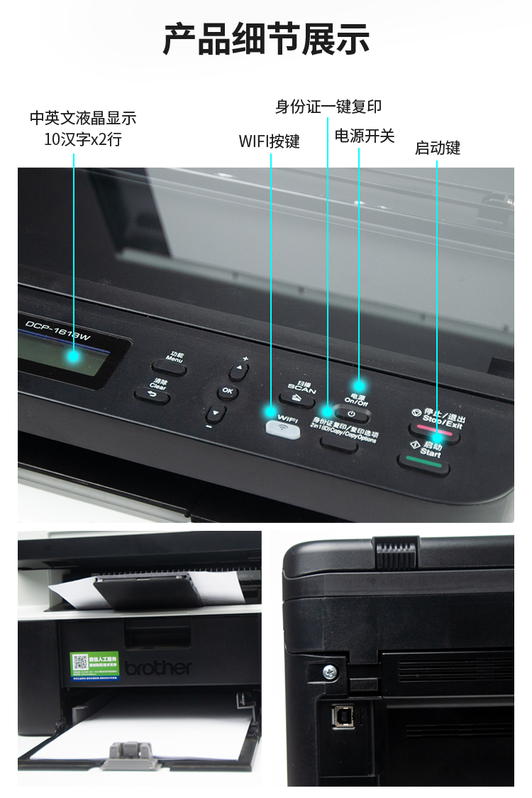 兄弟(brother)DCP1618W 黑白激光多功能一体机(打印、复印、扫描、无线网络)