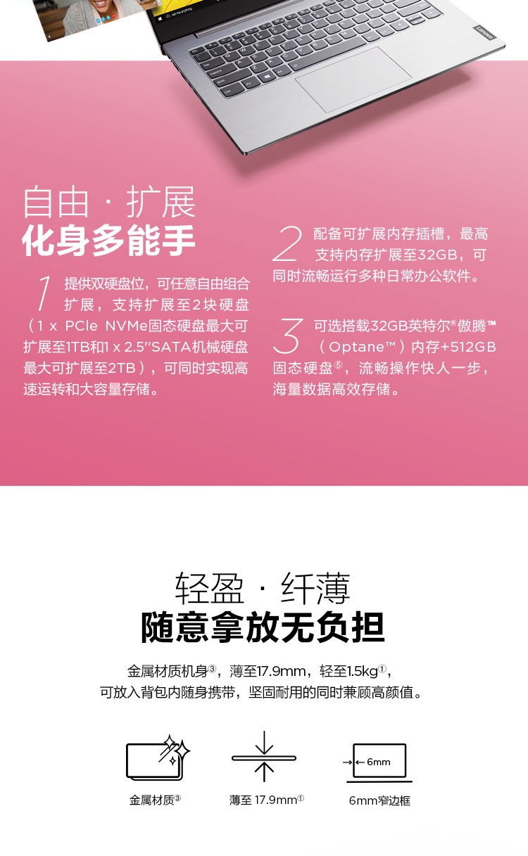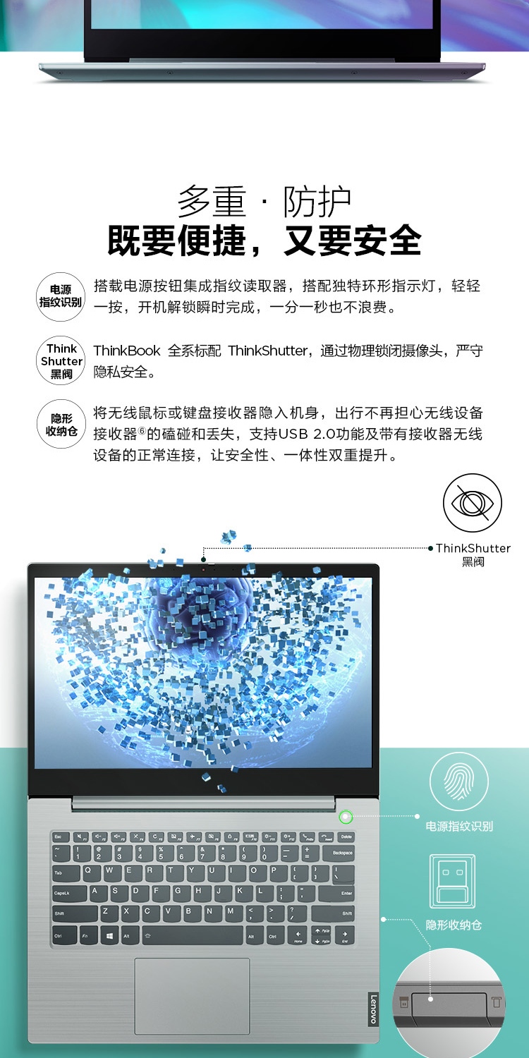 联想 ThinkBook 14 便携式计算机 i7-1165G7 16G 512GSSD MX450 2G WIN10 高色域 银色