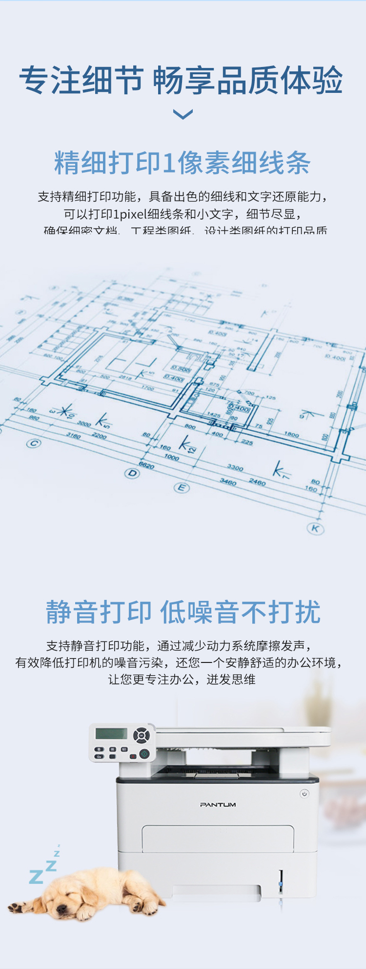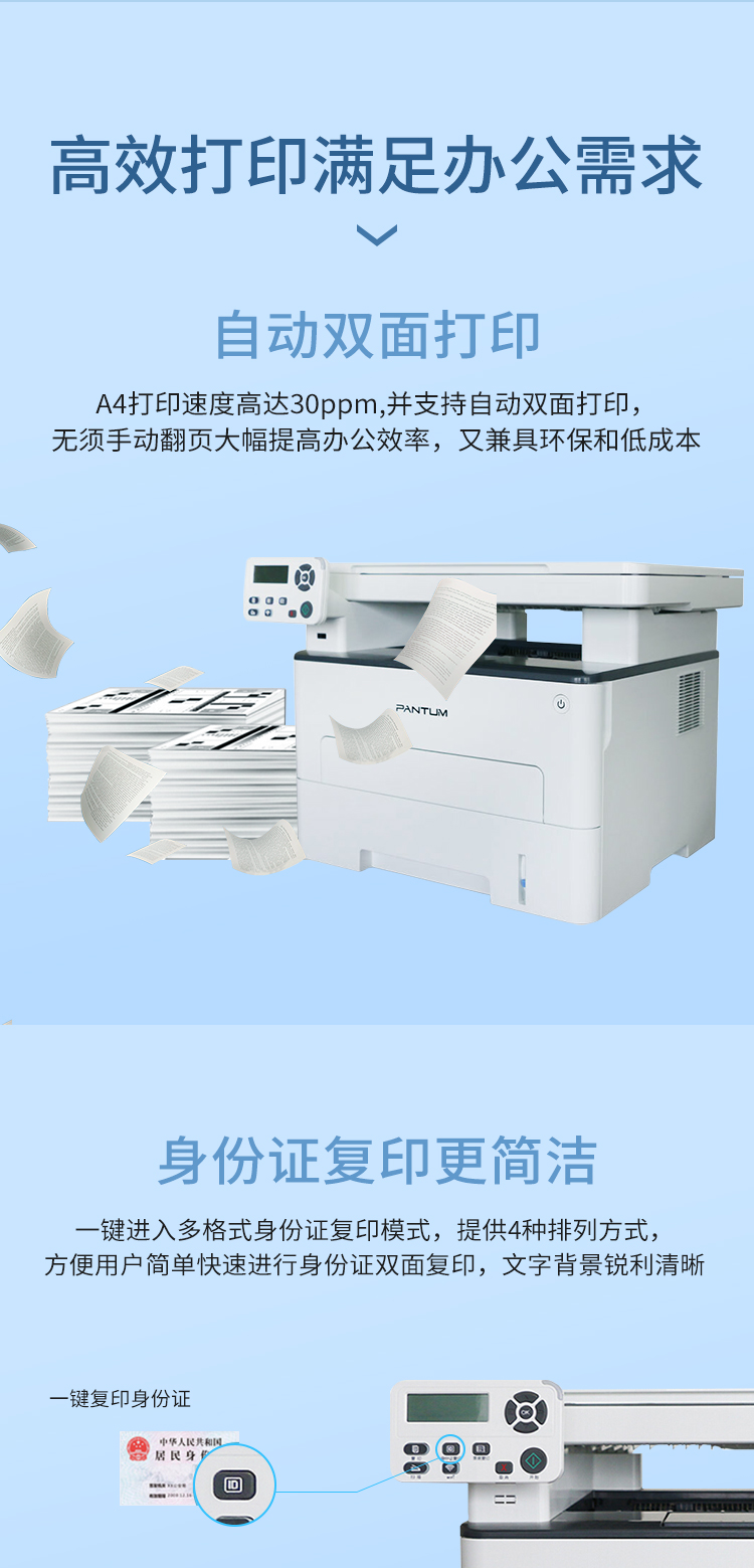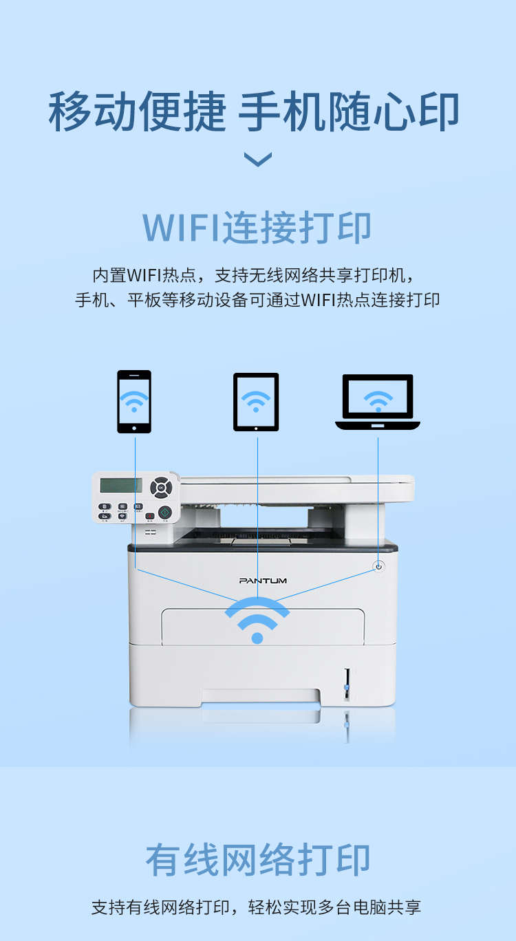 奔图(PANTUM)M6700DW A4黑白激光打印机 多功能一体机 家庭办公高速打印