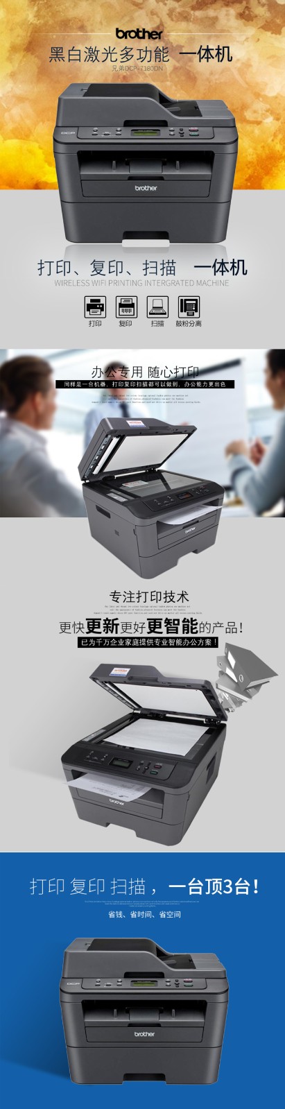兄弟DCP-7180DN自动双面打印一体机激光多功能一体机 复印扫描 有线网络打印家用办公A4三合一