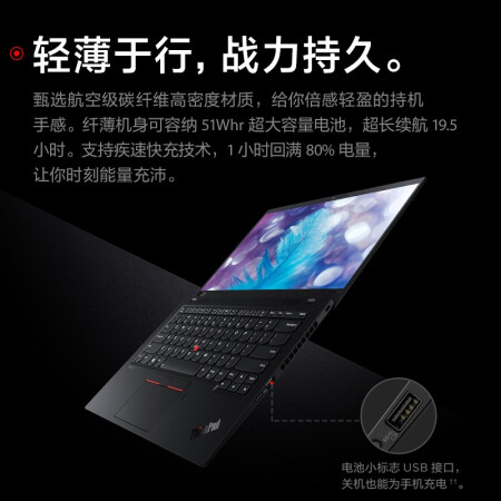 便携式计算机 联想ThinkPad X1 Carbon 2020 14英寸轻薄商务笔记本电脑 i5-10210 16G 512G固态FHD屏