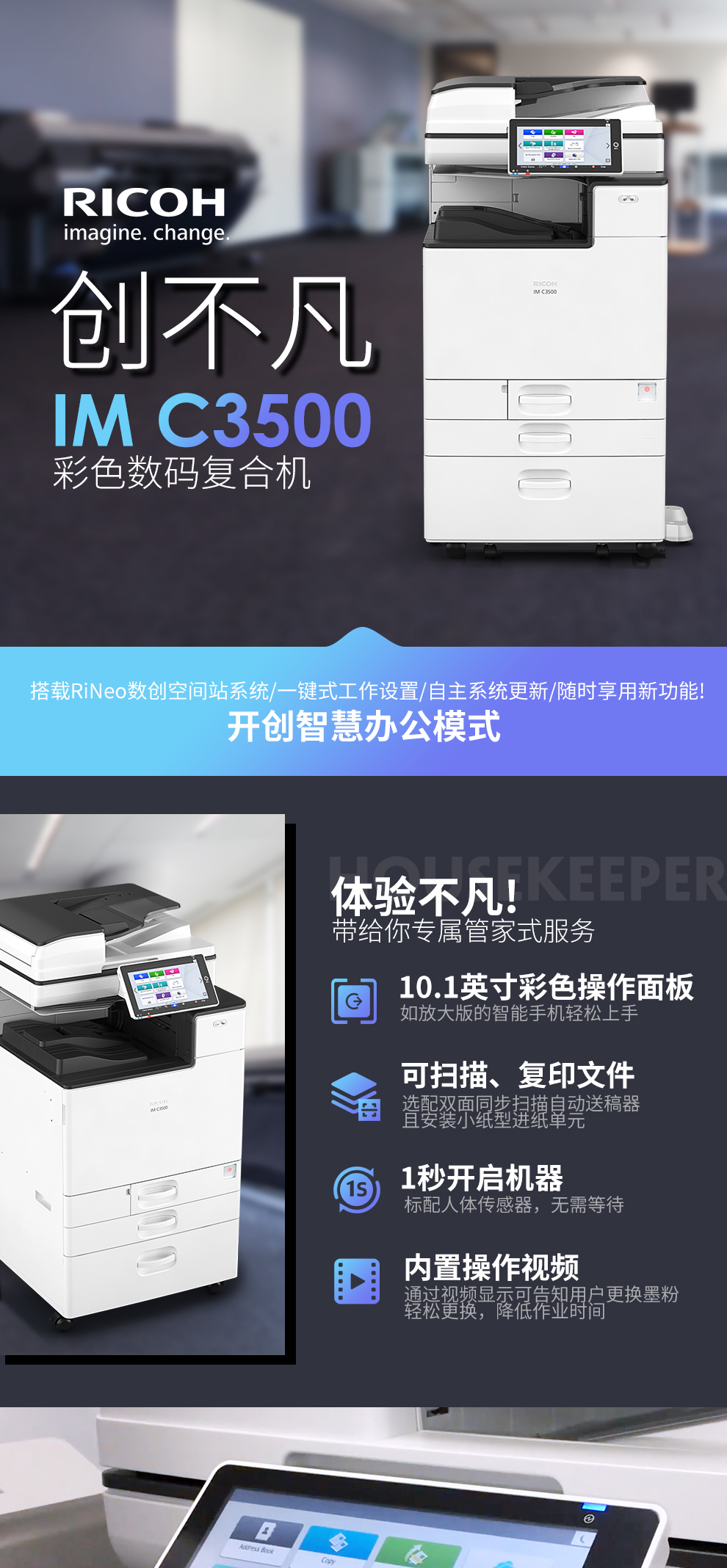 理光(Ricoh)IM C3500 A3彩色多功能数码复合机 简配+纸盒(免费上门安装+1年售后)