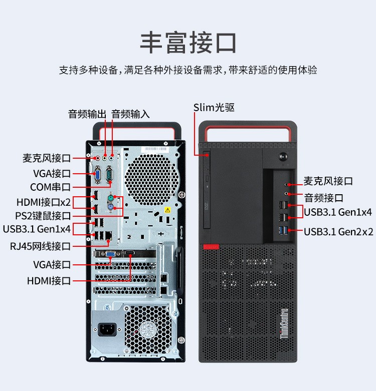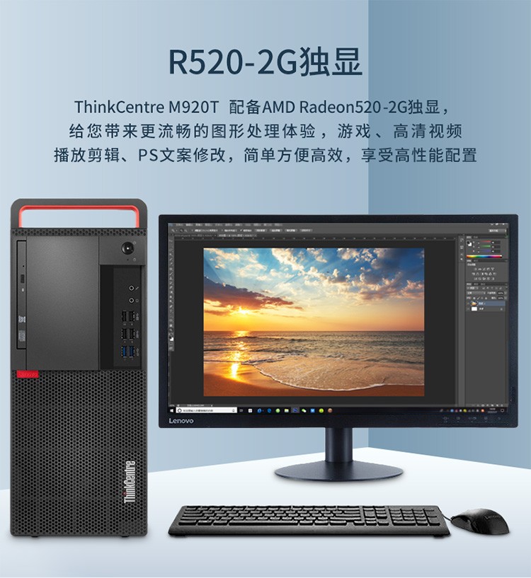 联想高性能台式机ThinkCentre M920T-I7-9700/8G/1T/2G/刻录/GF主机+21.5