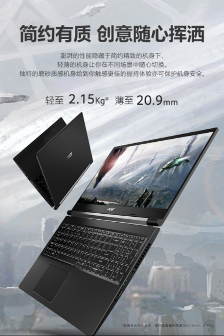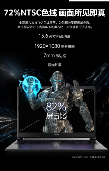 宏碁(Acer)威武骑士A715 便携式计算机15.6英寸窄边框高色域电竞游戏笔记本电脑 i5-10200H 8G 512G GTX1650Ti 4G WIN10