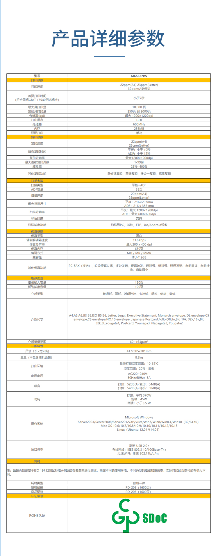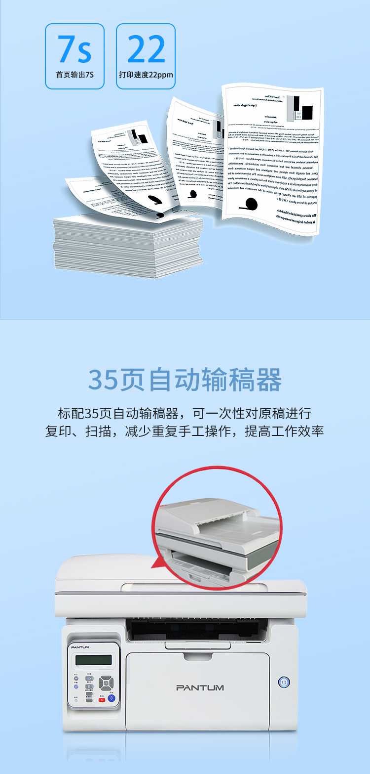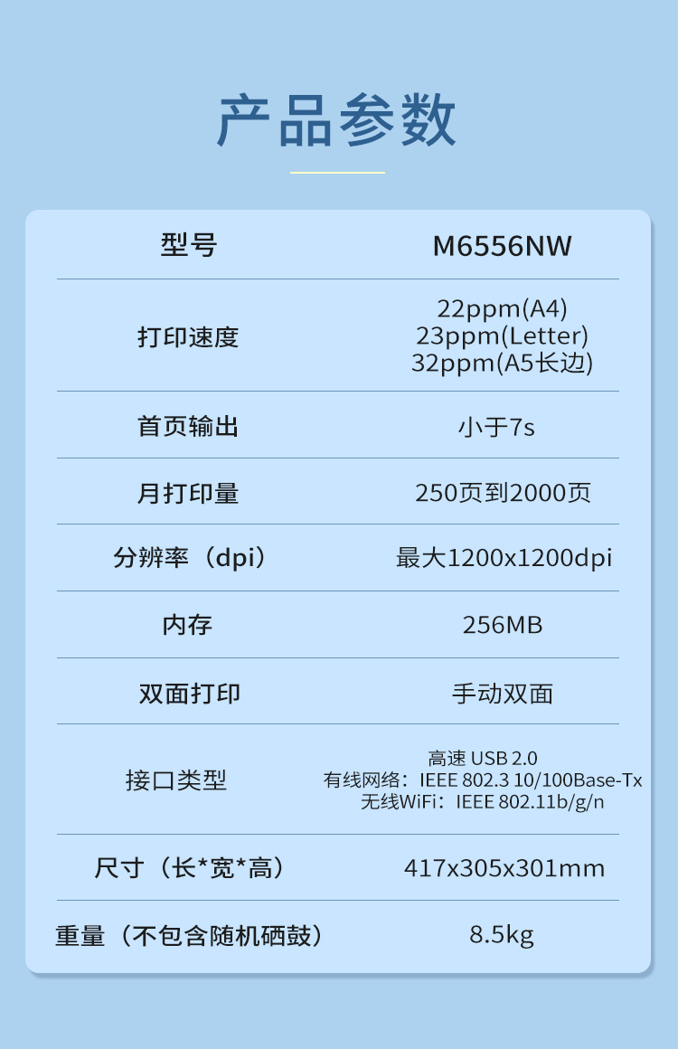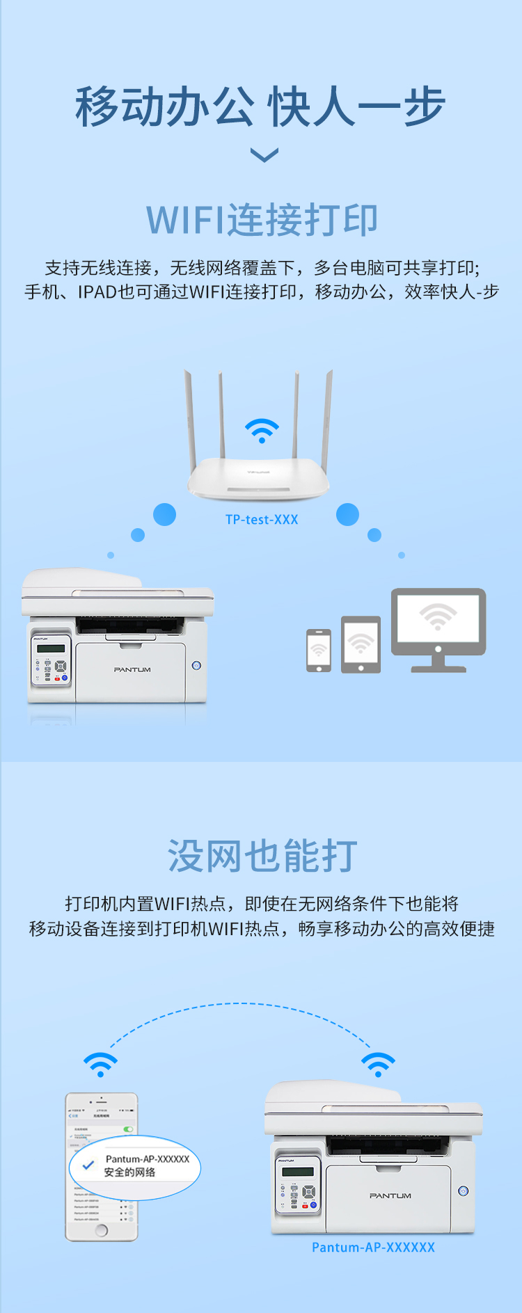 奔图(PANTUM)M6556NW A4黑白无线激光打印机 多功能一体机 家庭办公打印