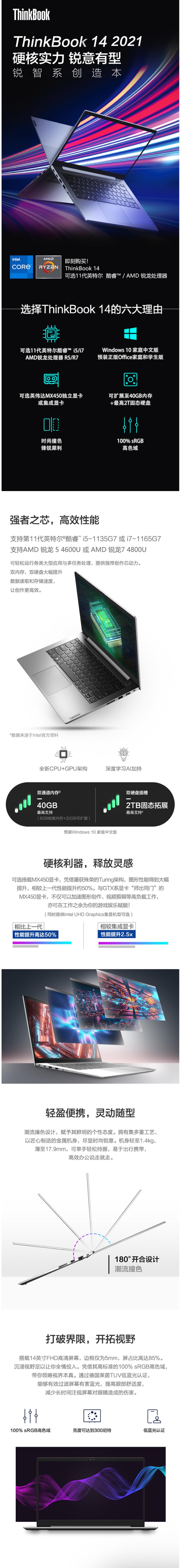 ThinkBook14-6ACD 便携式计算机 笔记本电脑 I5-1135G7 16G 512G 集显