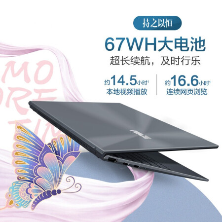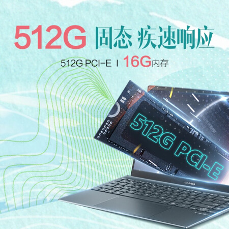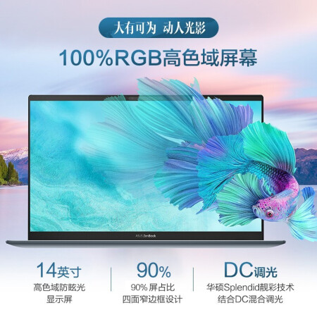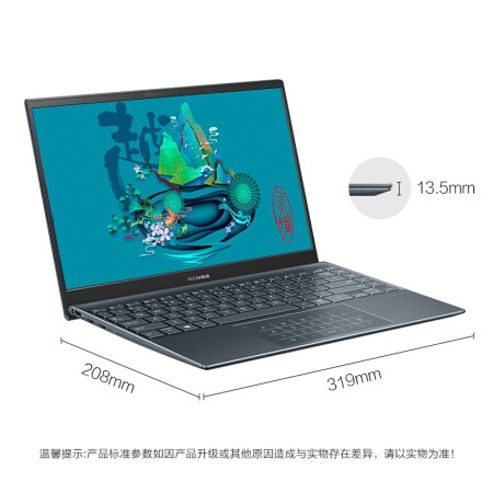 华硕 ASUS 灵耀14 十代酷睿 13.5mm超轻薄14英寸商务办公笔记本电脑100%sRGB 十代i5 16G 512G 轻约1.1kg 松木青