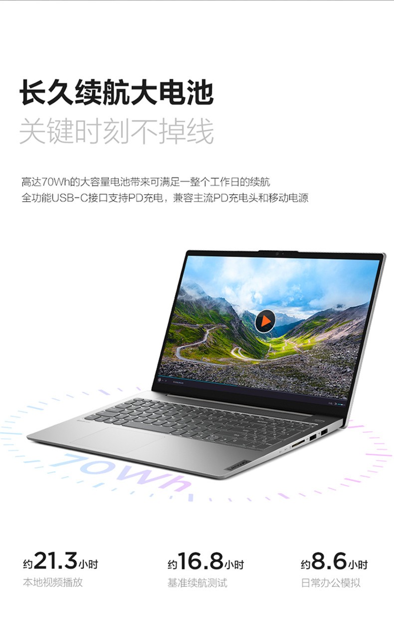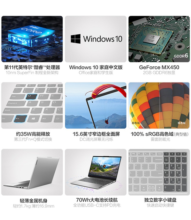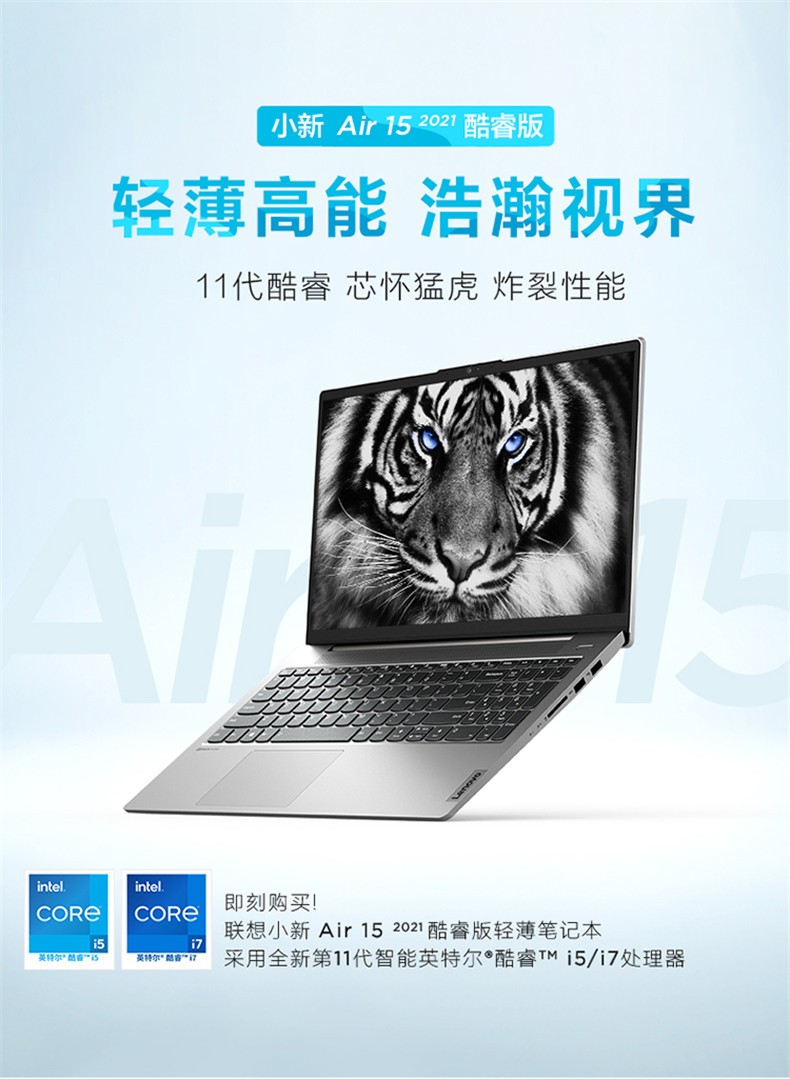 联想 Air15 便携式计算机 2021新款11代酷睿15.6英寸高性能大屏超轻薄11代 i7-1165G7 16G 512G丨标配 MX450独显