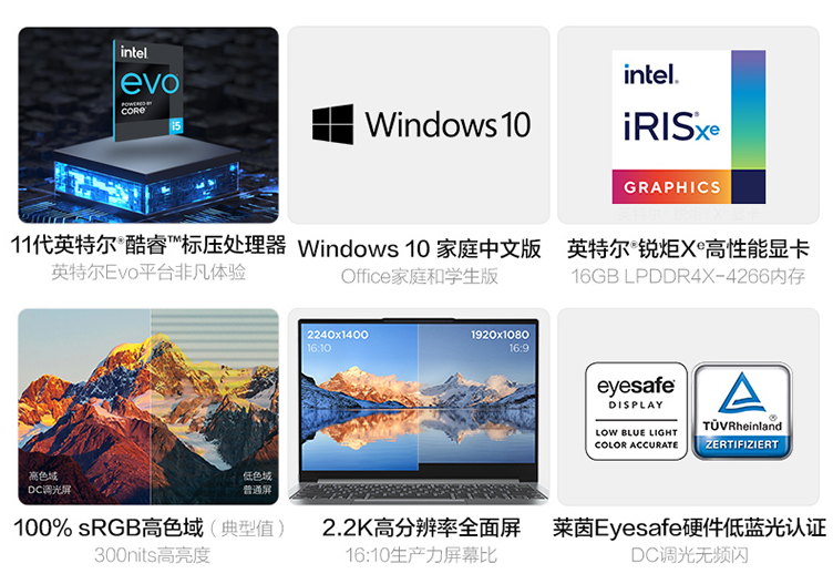 联想小新Pro14高性能轻薄本英特尔Evo平台14英寸全面屏办公笔记本电脑(标压i5-11300H 16G 512G 2.2K护眼屏)