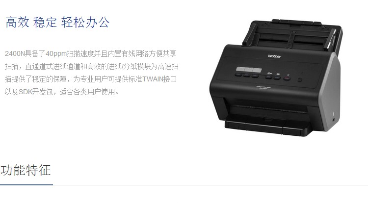 兄弟 brother 2400N高速馈纸式办公扫描仪A4自动双面有线网络共享U盘无线批量 ADS-2400N