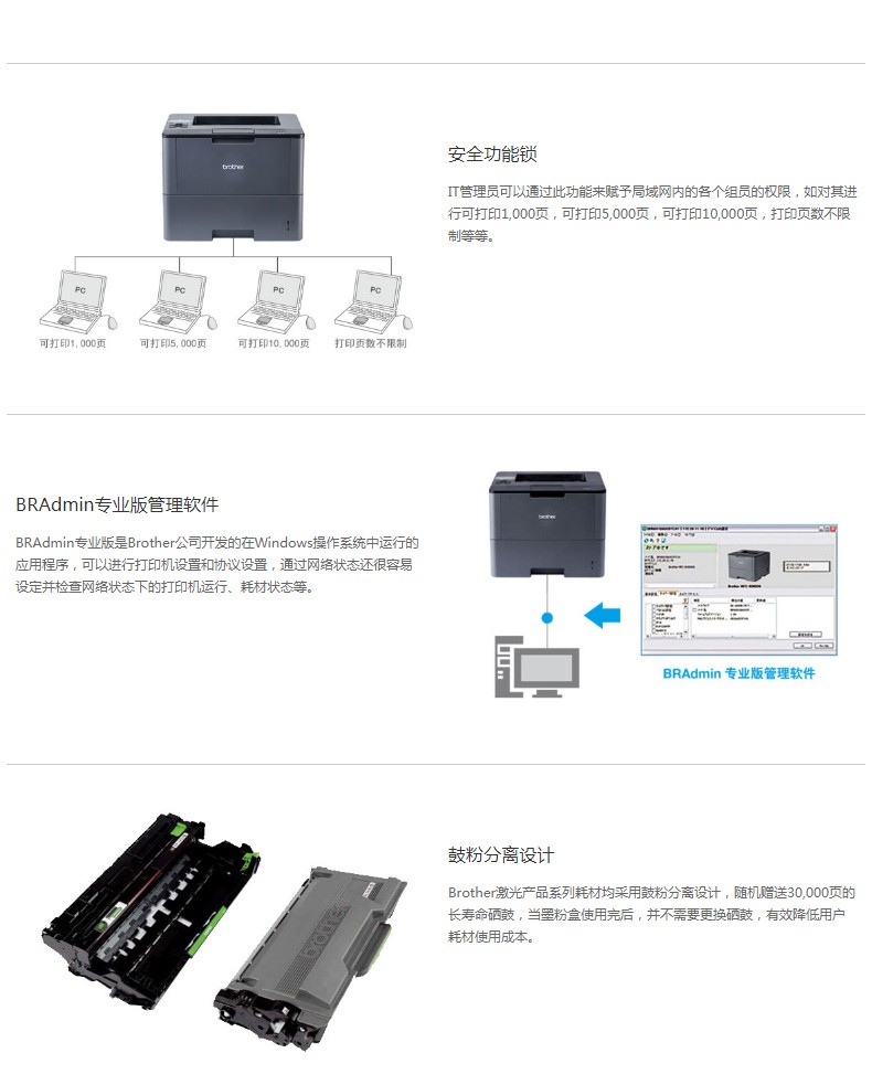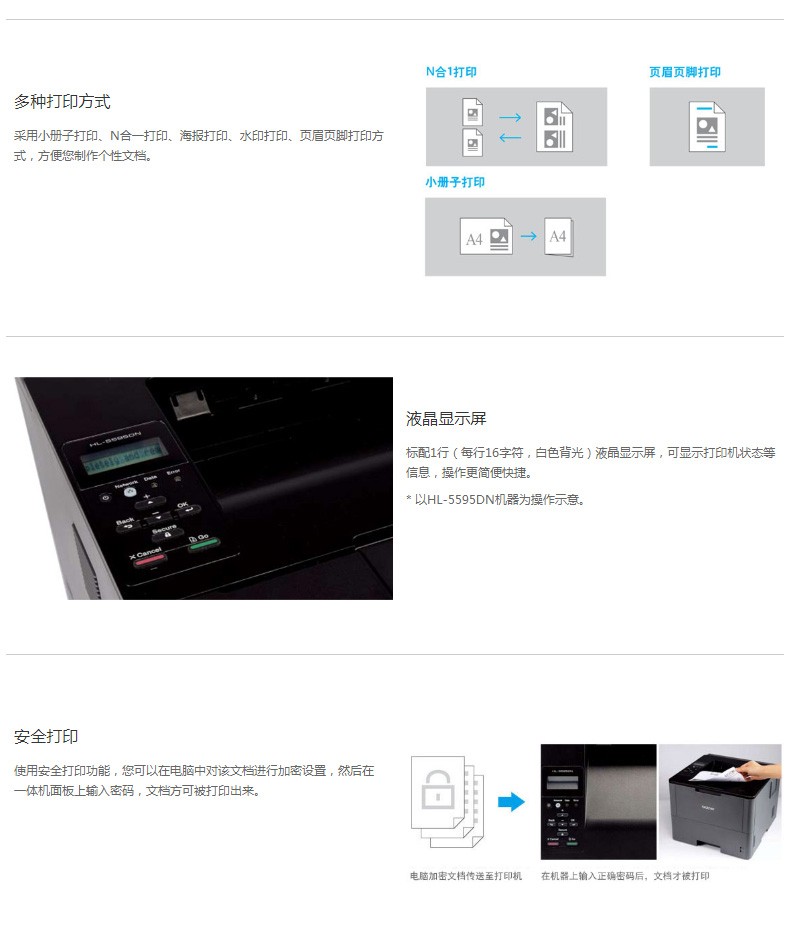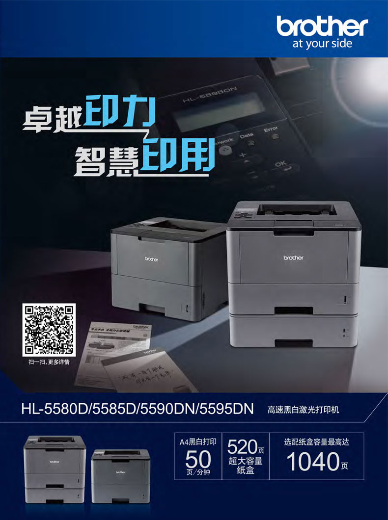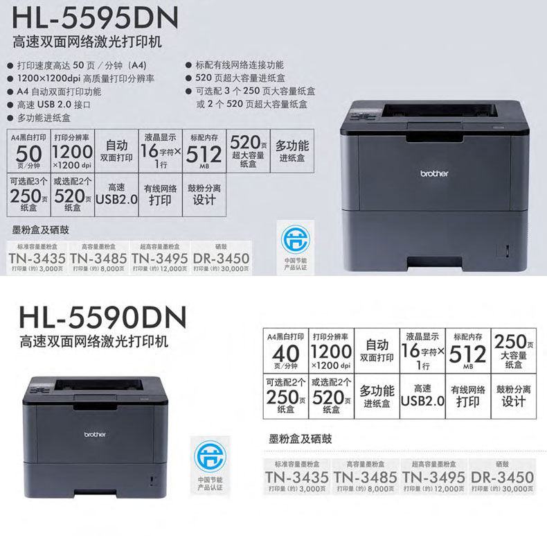 兄弟HL-5580d/5585d/5590dn/5595dn打印机自动双面网络A4办公黑白激光打印机 HL-5590DN 网线+双面+40页/分钟