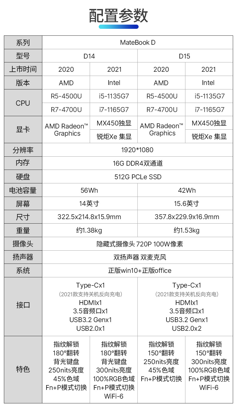 华为MateBook D15 全面屏超轻薄商务笔记本电脑 超极本 D15银|i7-1165G7 16G 512G独显
