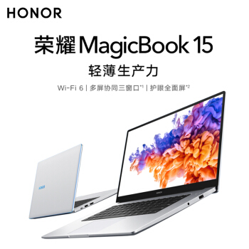荣耀笔记本电脑MagicBook 15 2021款 轻薄本15.6英寸手提商务办公超薄超级本 银|i7十一代 16G 512G 独显 官方标配