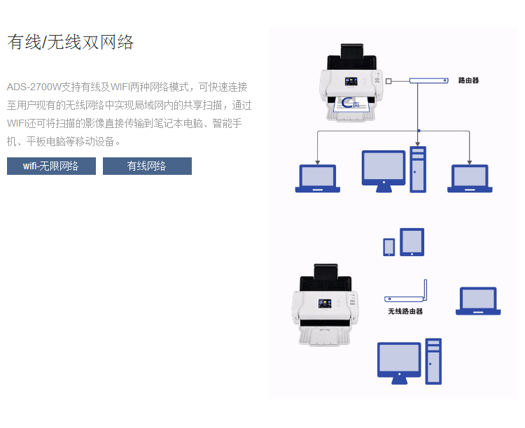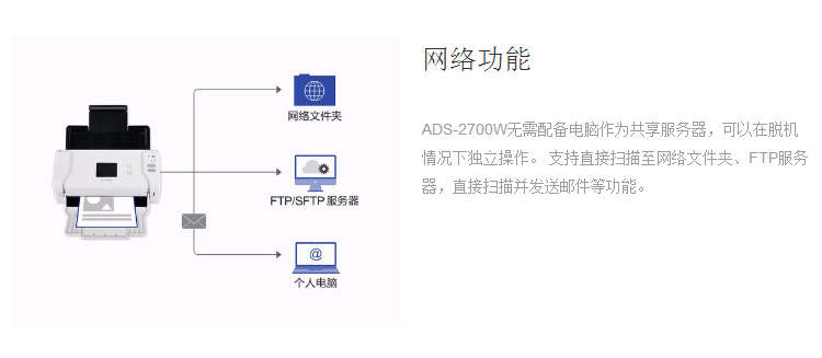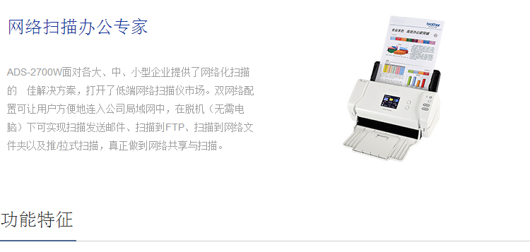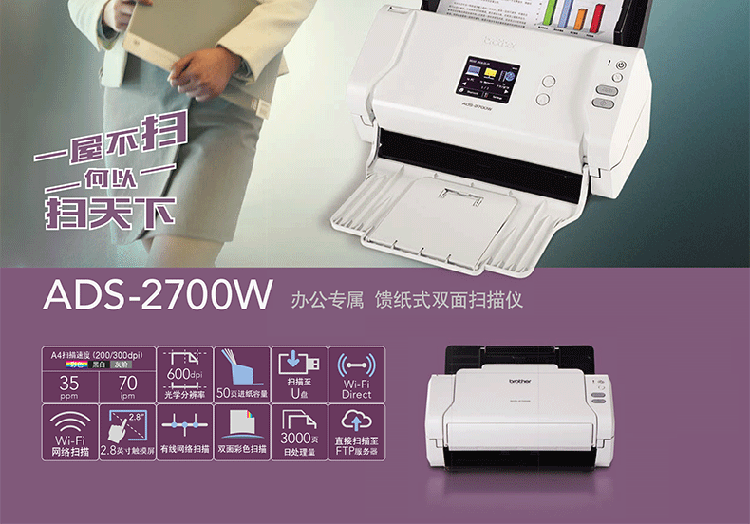 brother兄弟ADS-2700W/2200/2100e扫描仪馈纸式无线双面A4彩色连续办公扫描仪 ADS-2700W