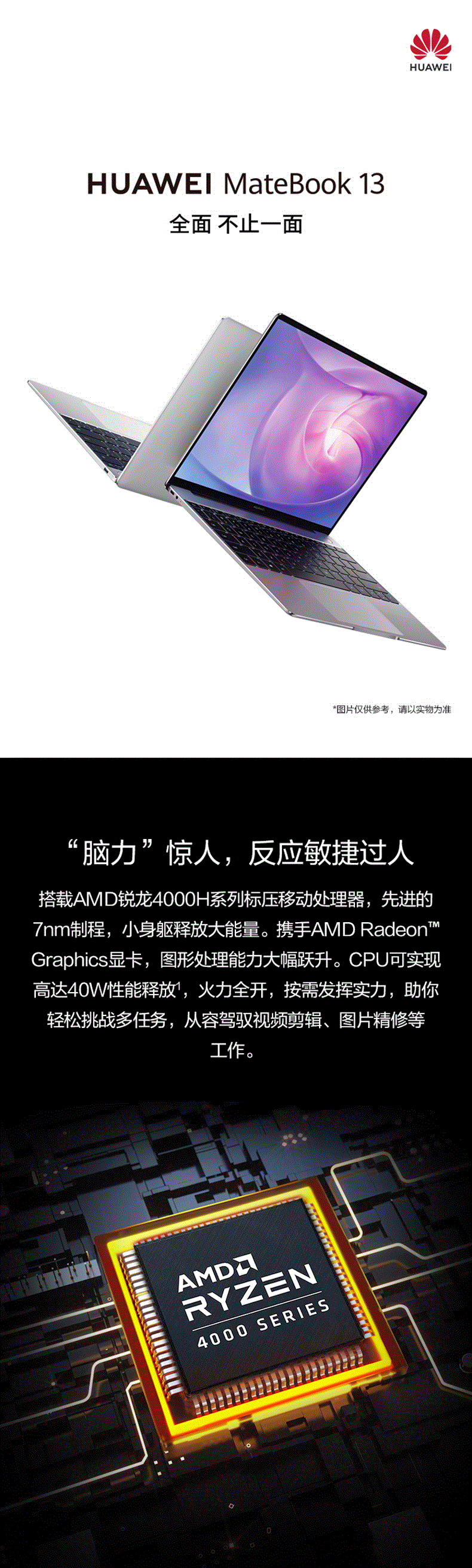 华为笔记本MateBook 13英寸2K高清六核八核标压 商务办公学生游戏轻薄便携指纹金属女生青春2020新品手提电脑