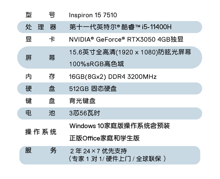 戴尔笔记本电脑Dell灵越15Plus 英特尔酷睿 15.6英寸高性能轻薄本设计师 i5-11400H 16G 512G RTX3050 银