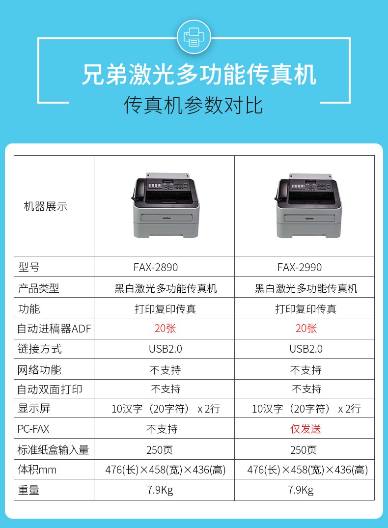 兄弟FAX-2890 黑白激光多功能传真机A4纸打印复印一体机电话办公家用商用