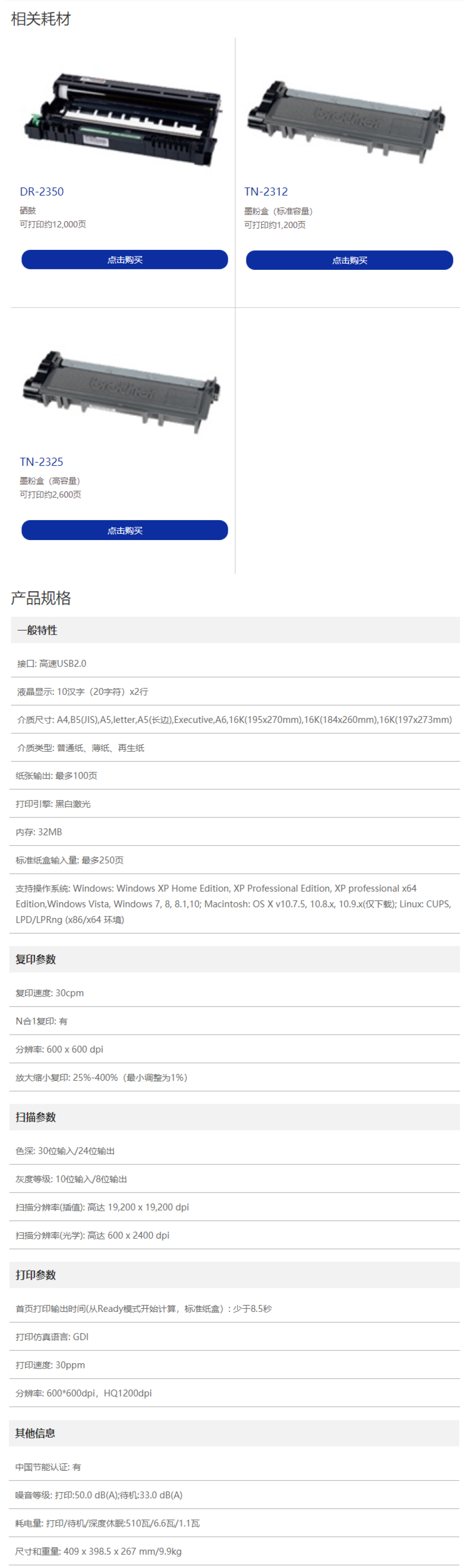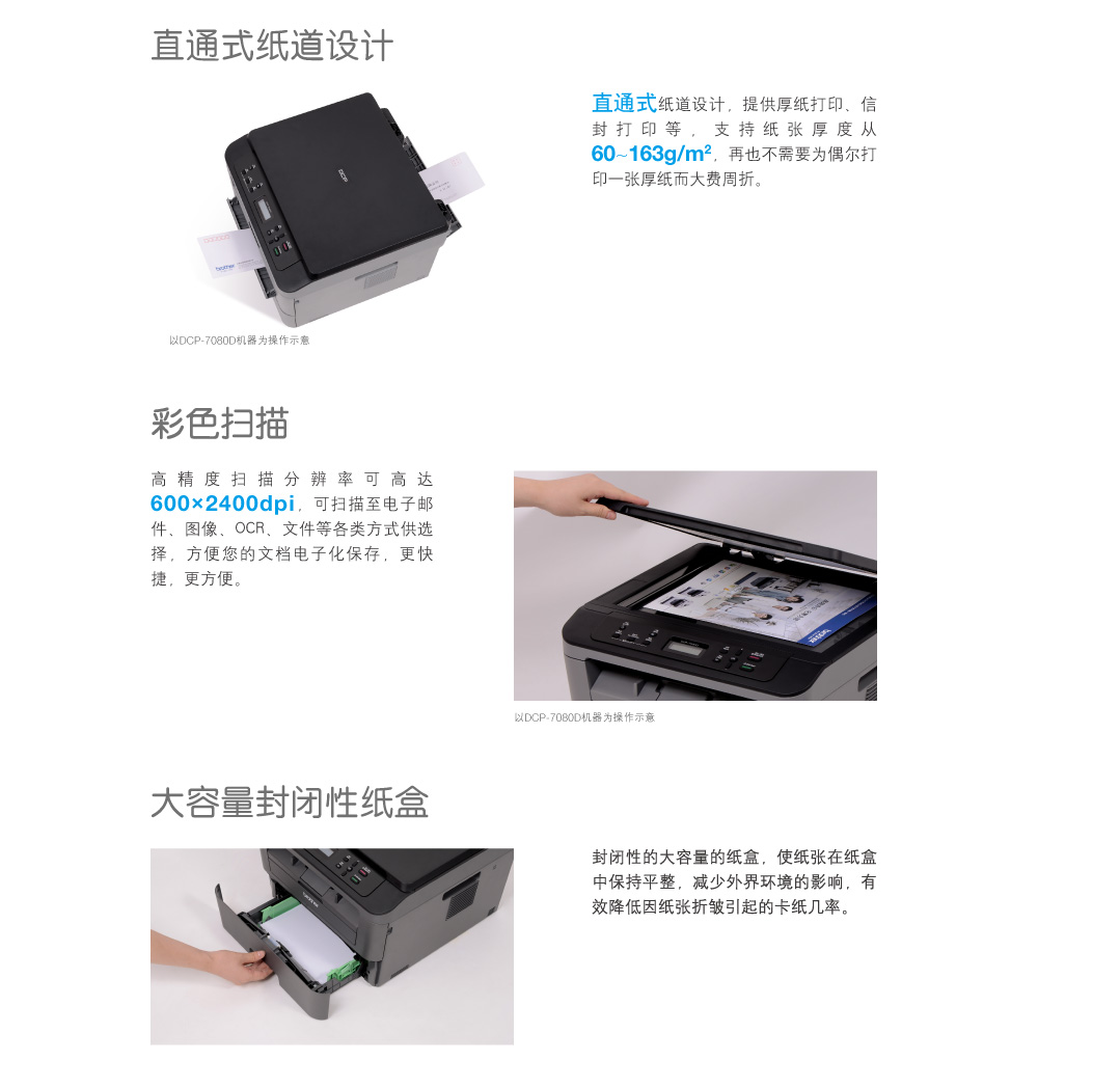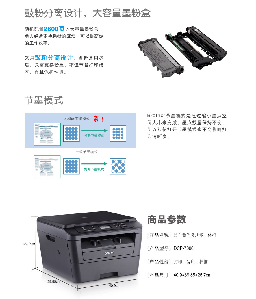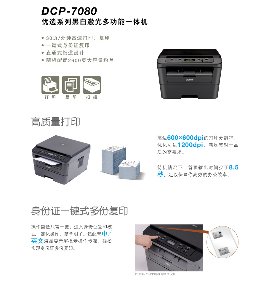 兄弟(brother )DCP-7080 黑白激光多功能一体机 打印、复印、扫描