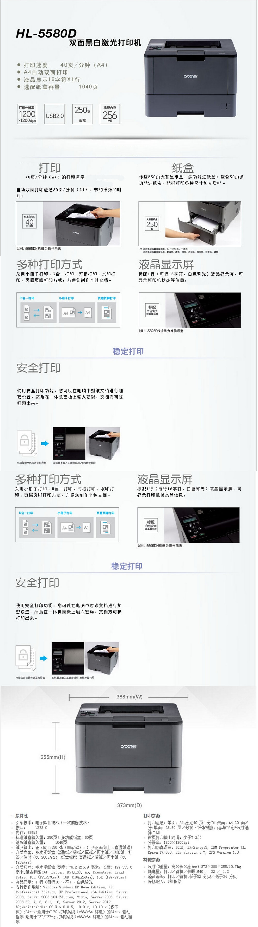 兄弟Brother HL-5580D 高速黑白激光双面激光打印机标书大量打印5440D升级