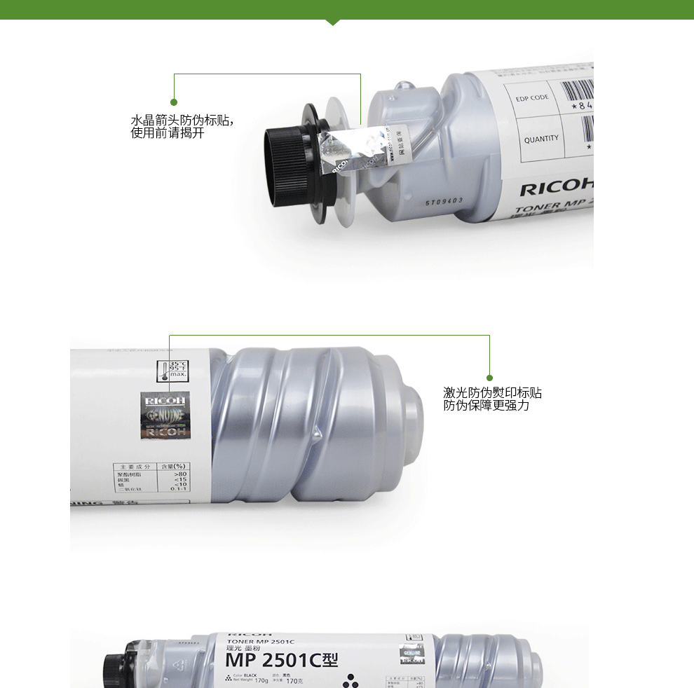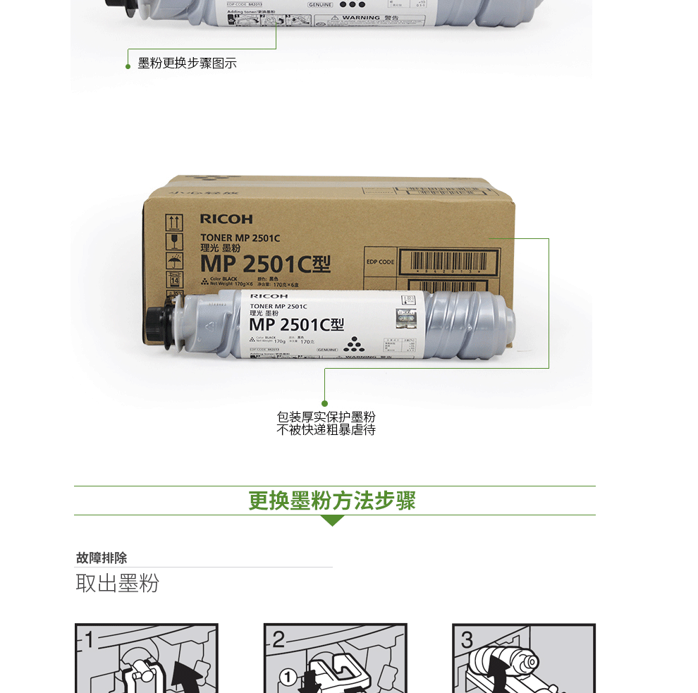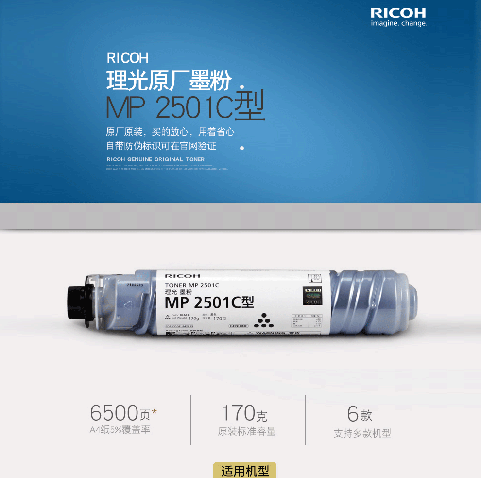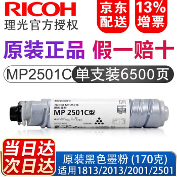 理光(RICOH) MP2501C原装黑色墨粉盒 适用2001L/2501SP/1813L碳粉粉盒 单支装170g(6500页) (热卖推荐)