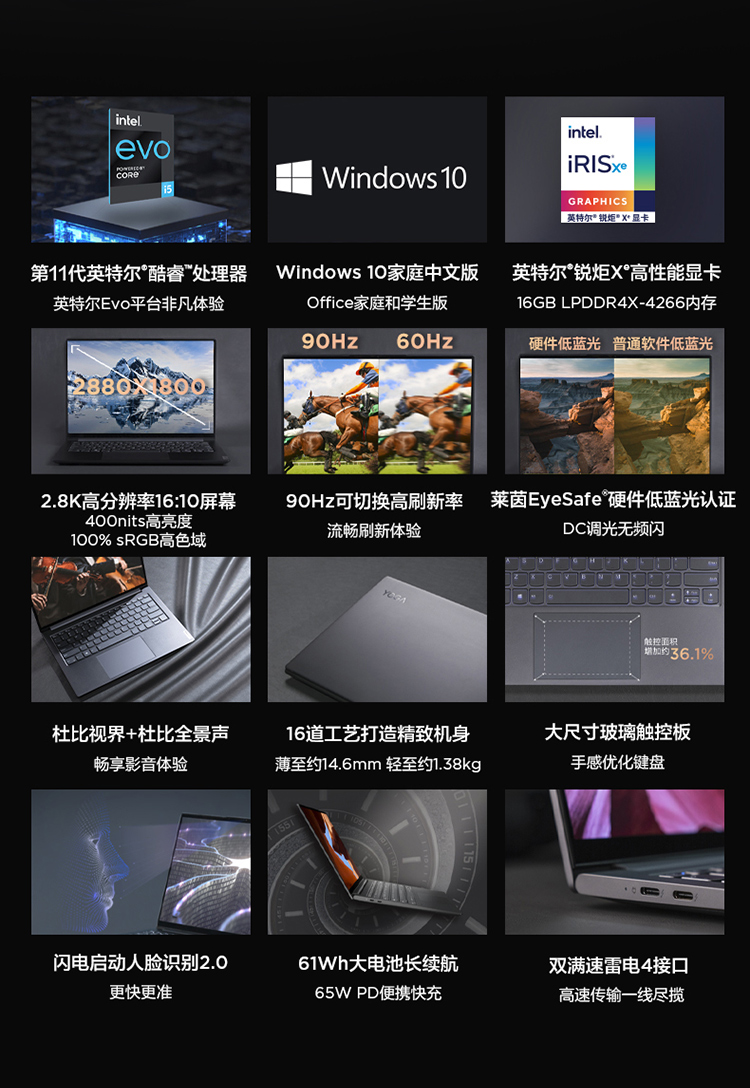 联想 Lenovo YOGA 14s 英特尔Evo平台 14英寸全面屏笔记本电脑 i5-1135G7 16G 512G 2.8K 90Hz 锐炬显卡 灰