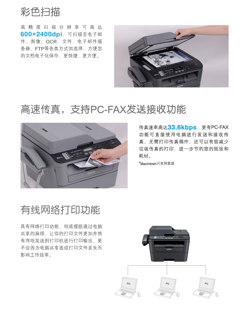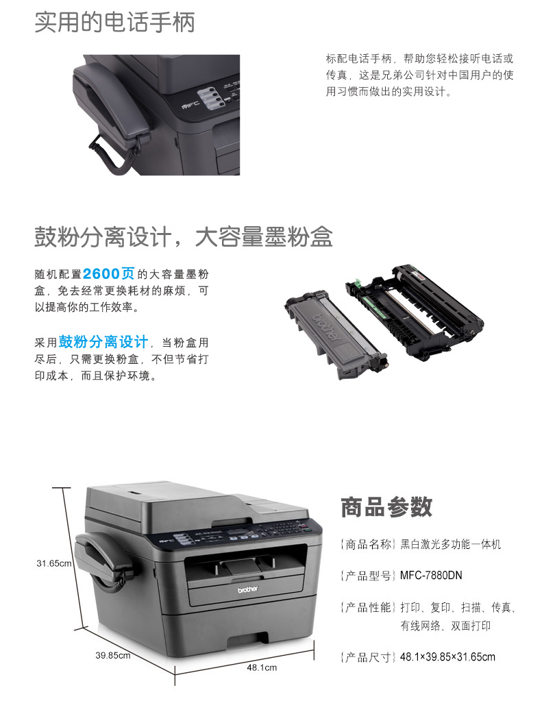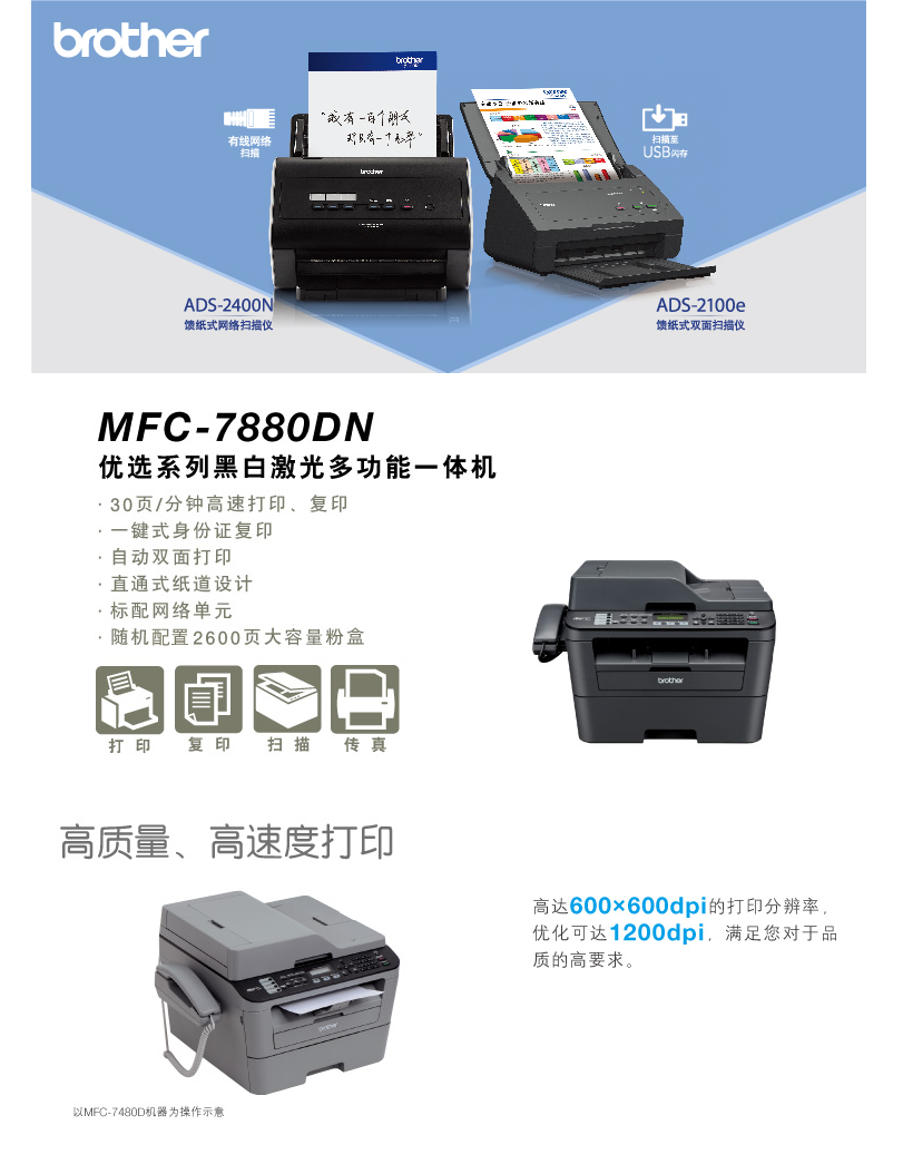 兄弟(brother)MFC-7880DN 黑白激光多功能一体机(打印、复印、扫描、传真、有线网络、双面打印)