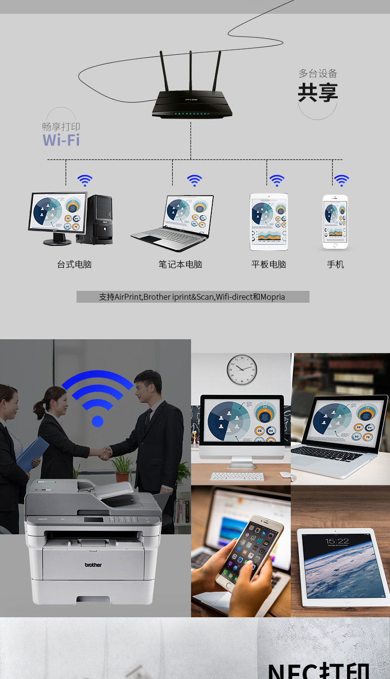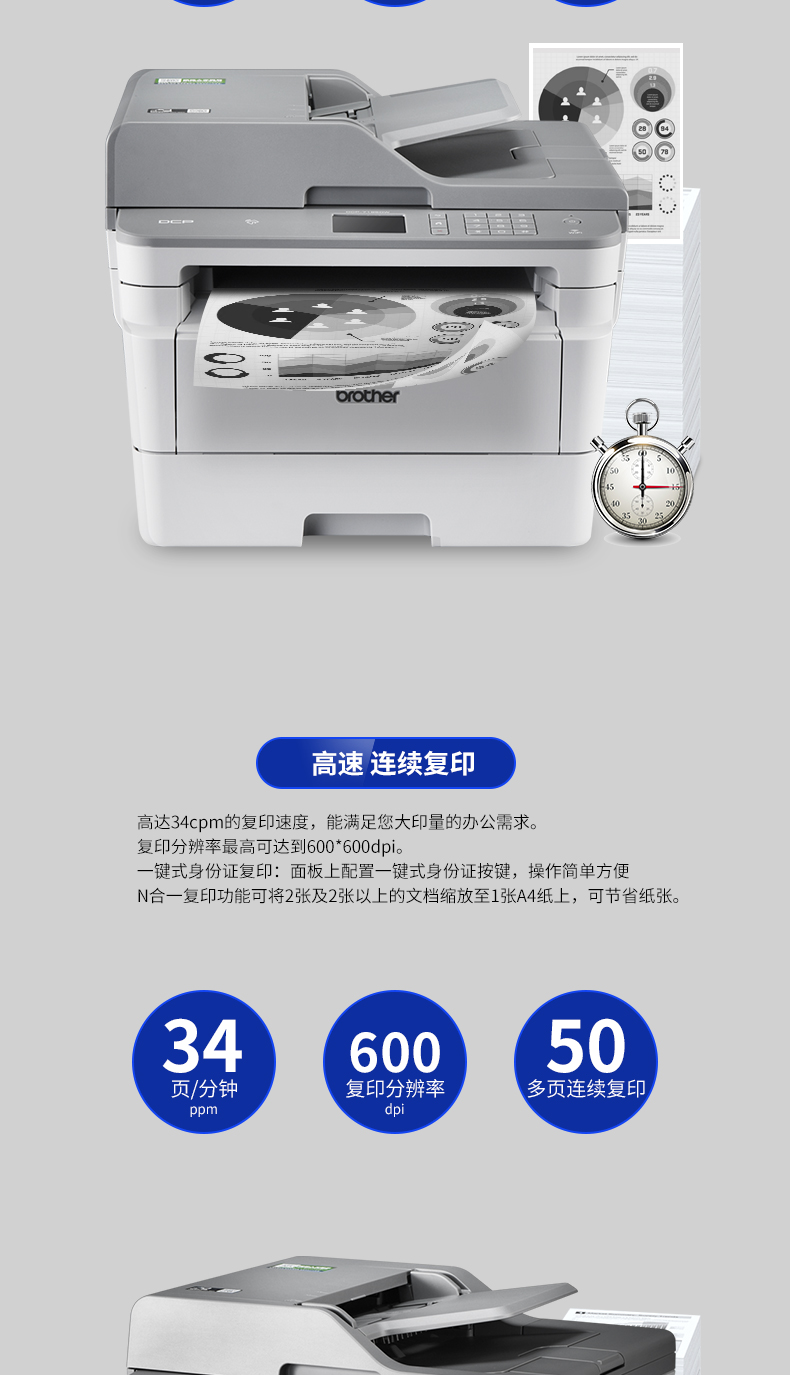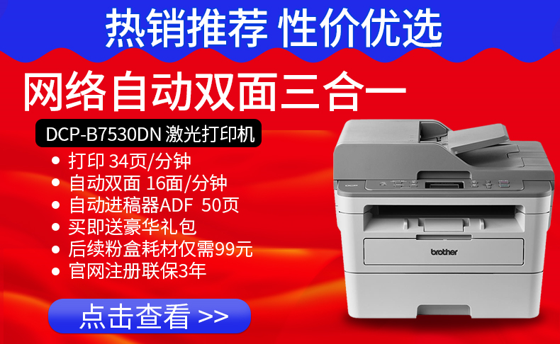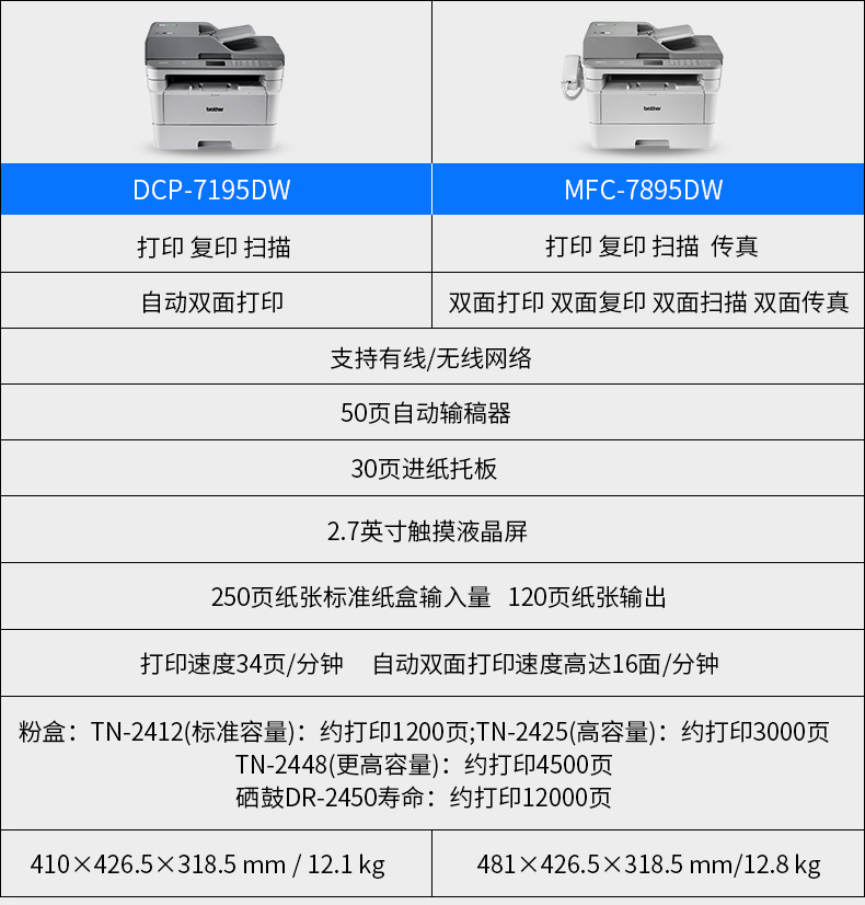 兄弟(brother)DCP-7195DW 黑白激光多功能一体机打印复印扫描双面无线网络家用办公 MFC-7895DW标配(四合一)