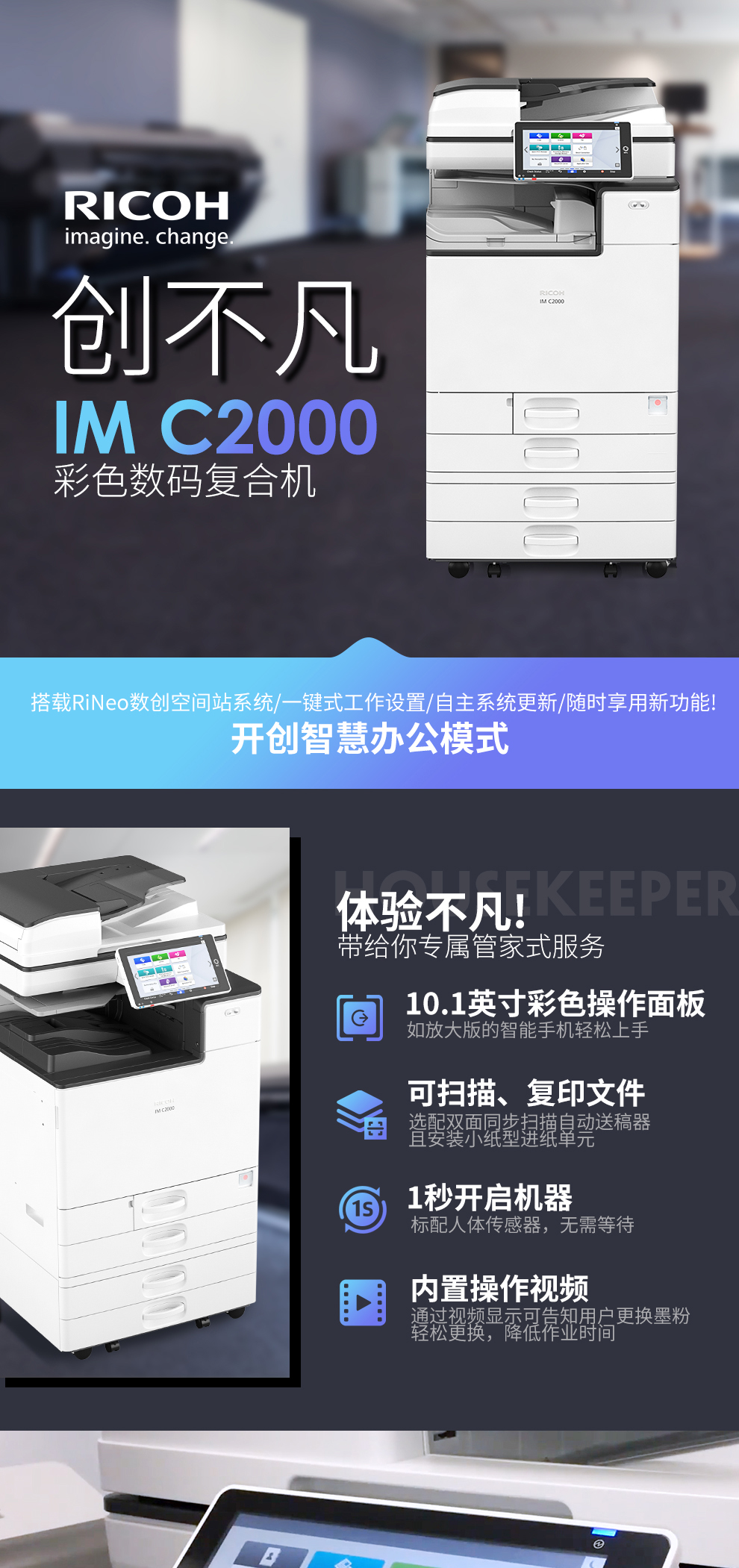 理光(Ricoh)IM C2000 A3彩色多功能数码复合机 主机+送稿器(免费上门安装+1年售后)