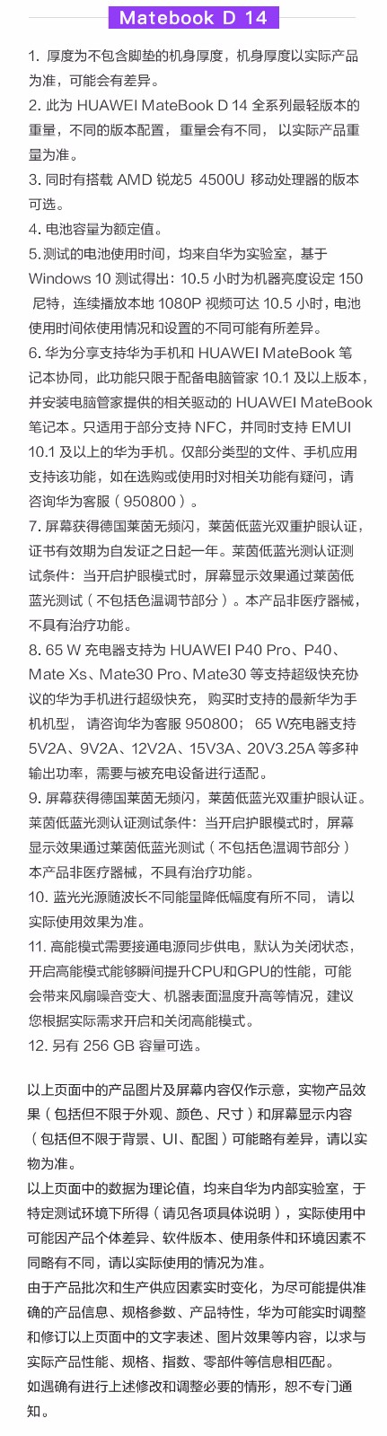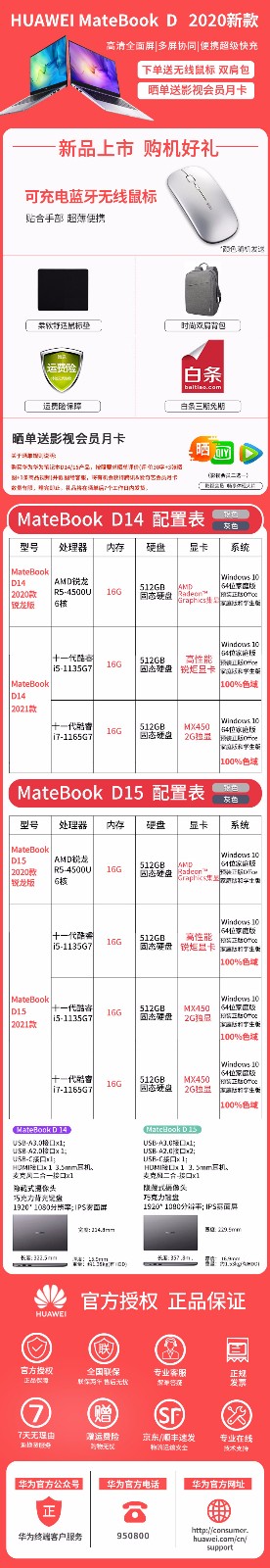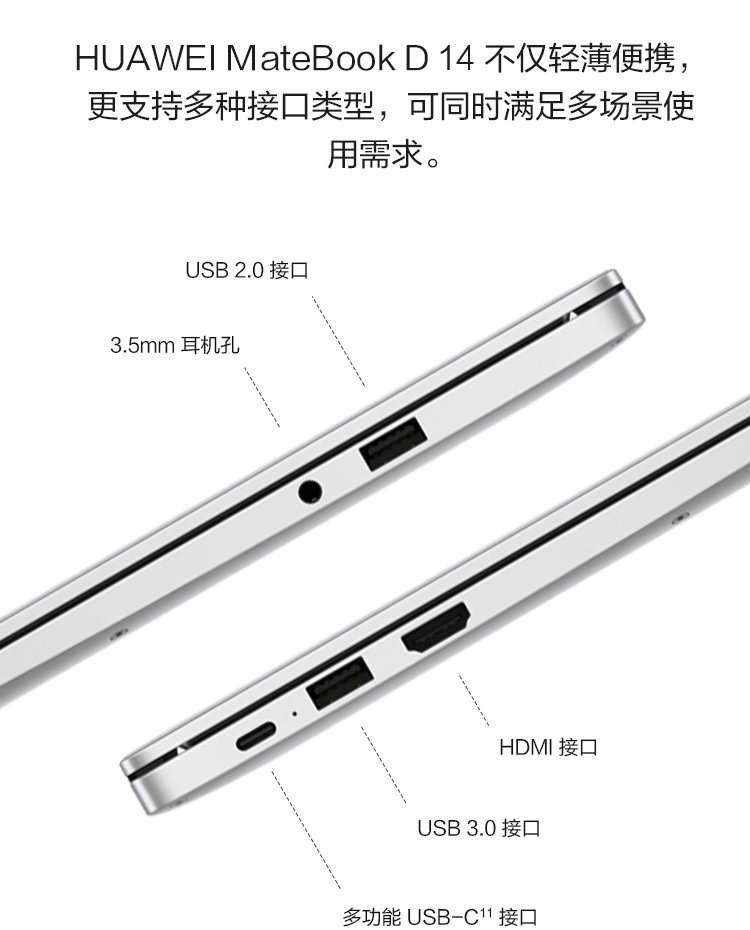 华为MateBook D14 笔记本电脑银色六核R5-4500U 16G 512G标配