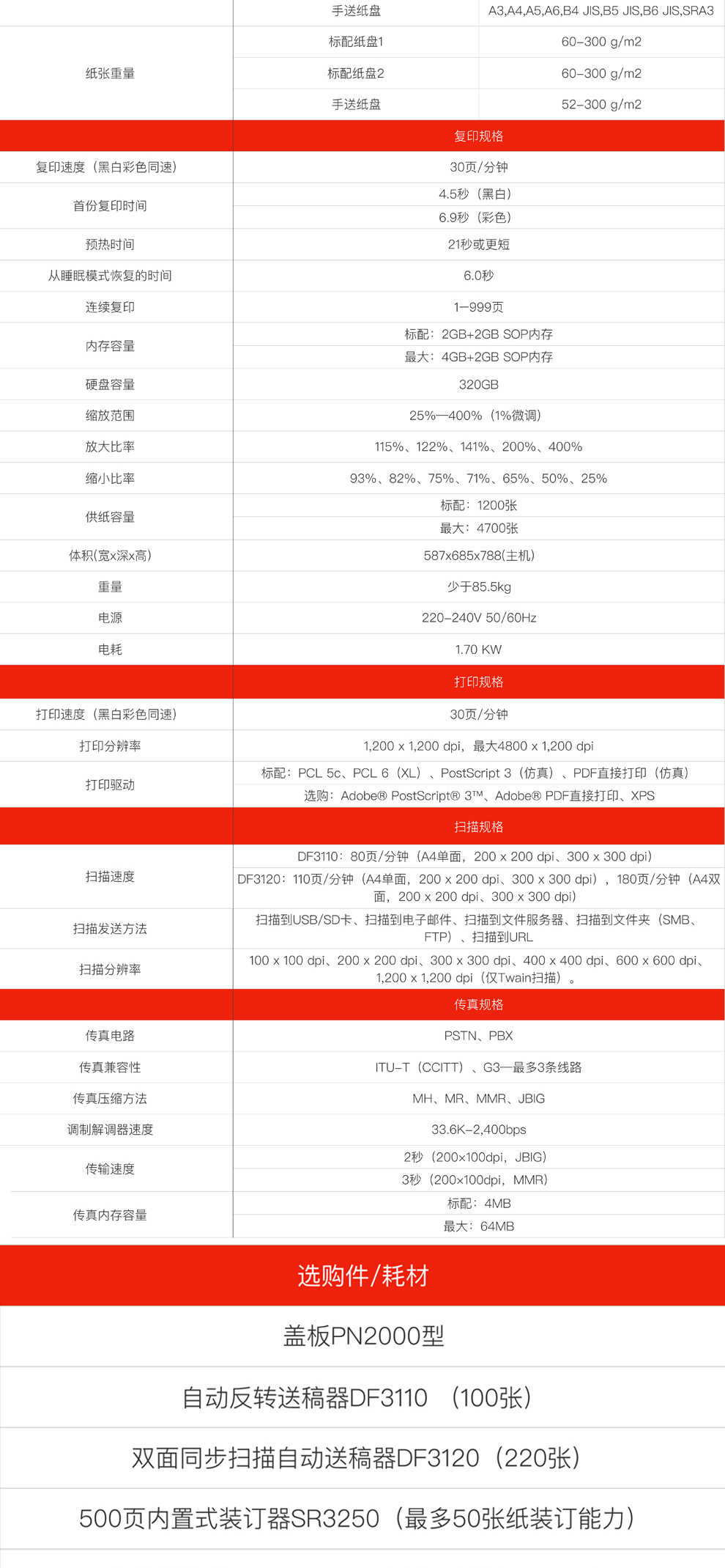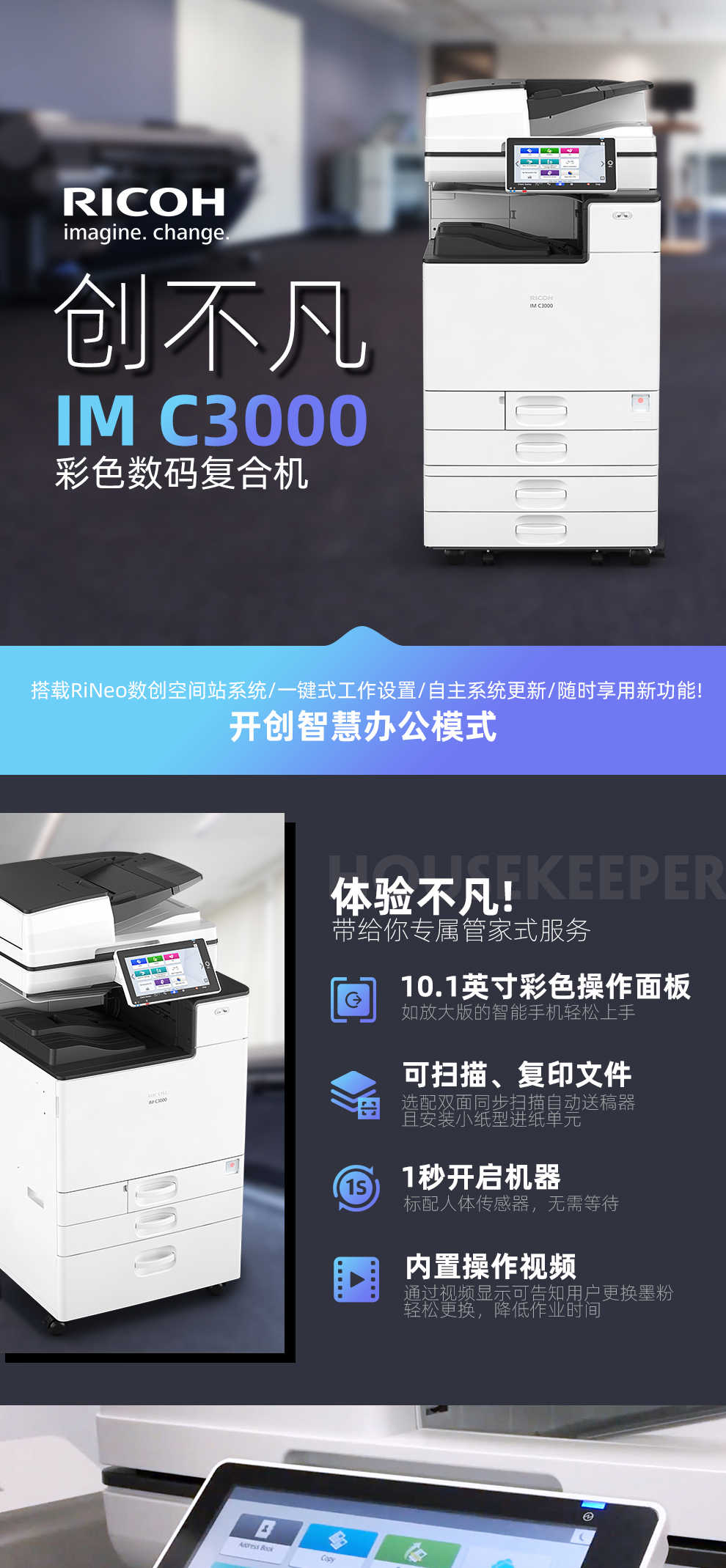理光(Ricoh)IM C3000 A3彩色多功能数码复合机 主机+送稿器(免费上门安装+1年售后)