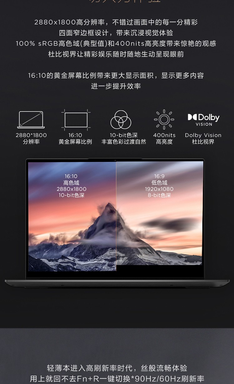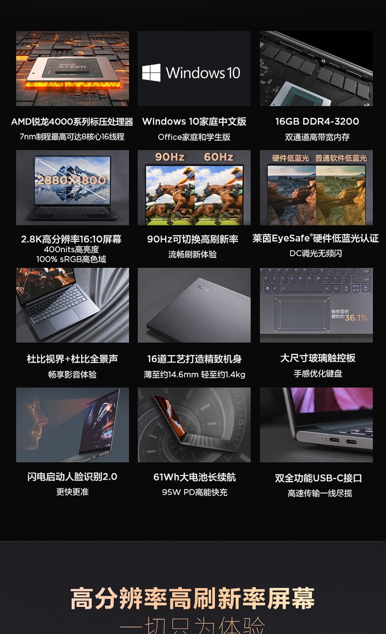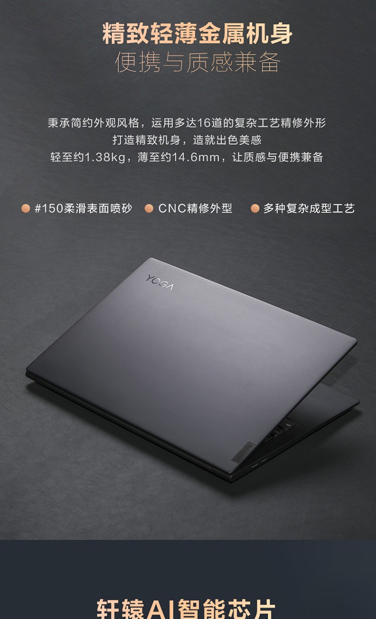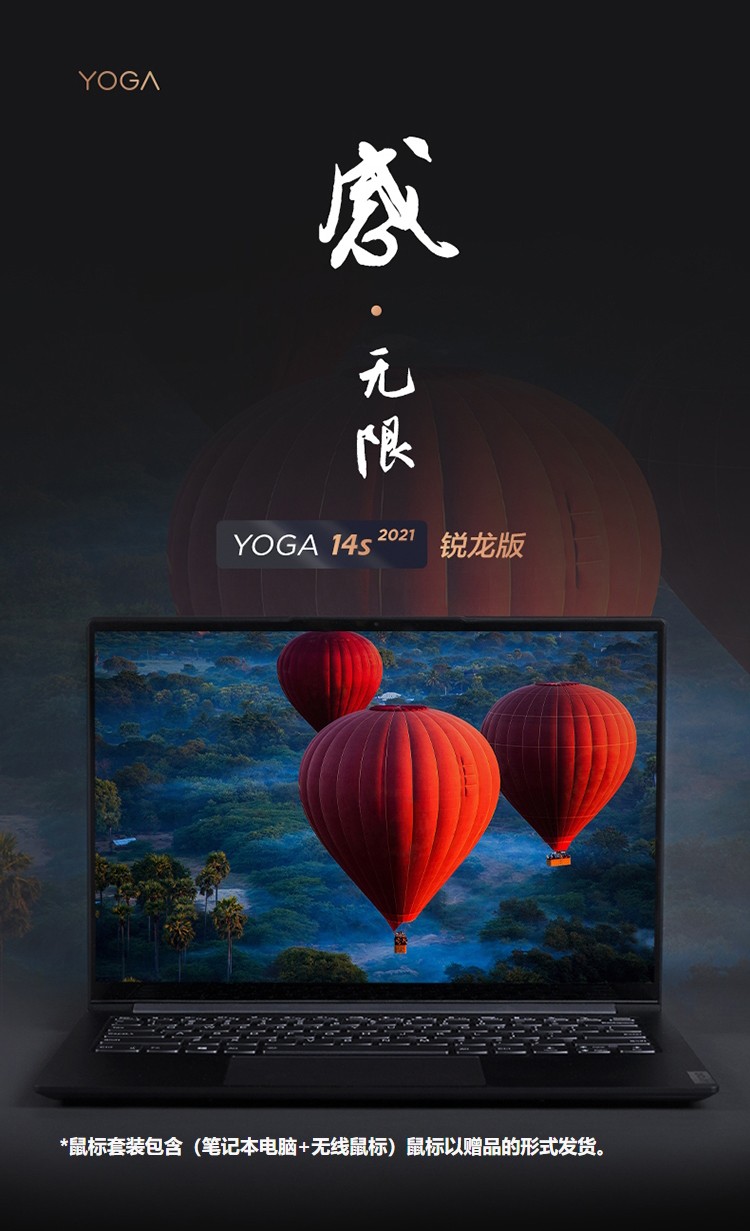 联想YOGA14S 14英寸2021款锐龙版标压R7高色域笔记本电脑 标配R7-4800H 16G 512G固态 深空灰
