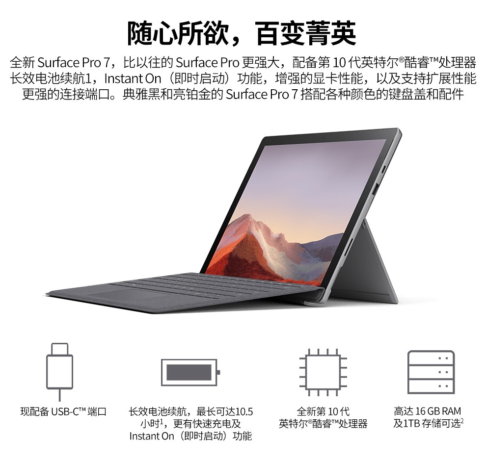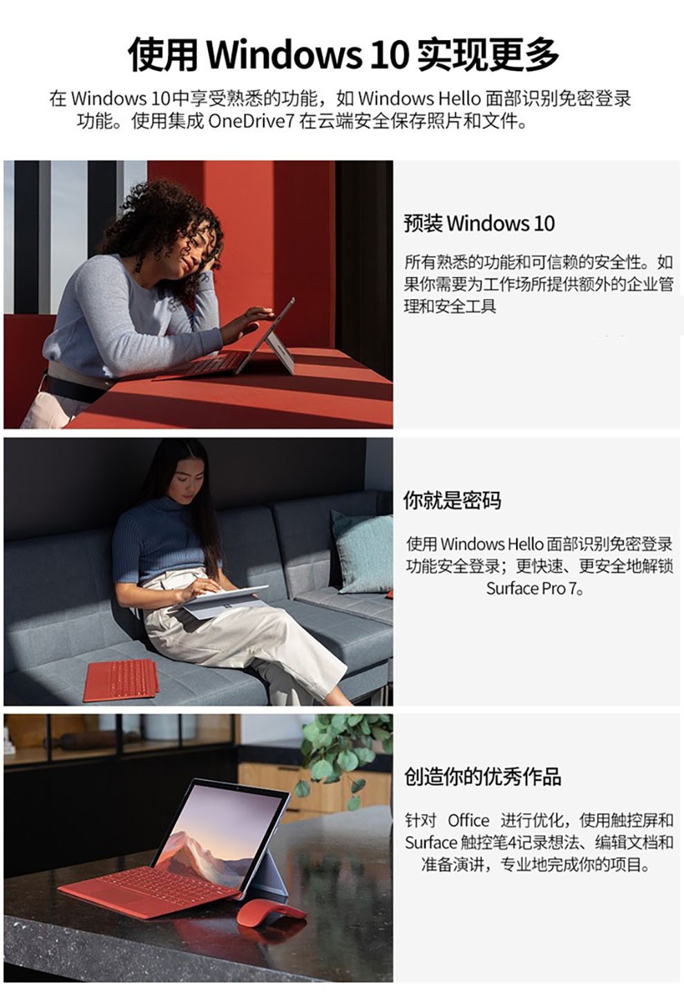 微软(Microsoft)Surface Pro7 便携式计算机 二合一平板电脑笔记本 12.3英寸 i5 8+128G亮铂金