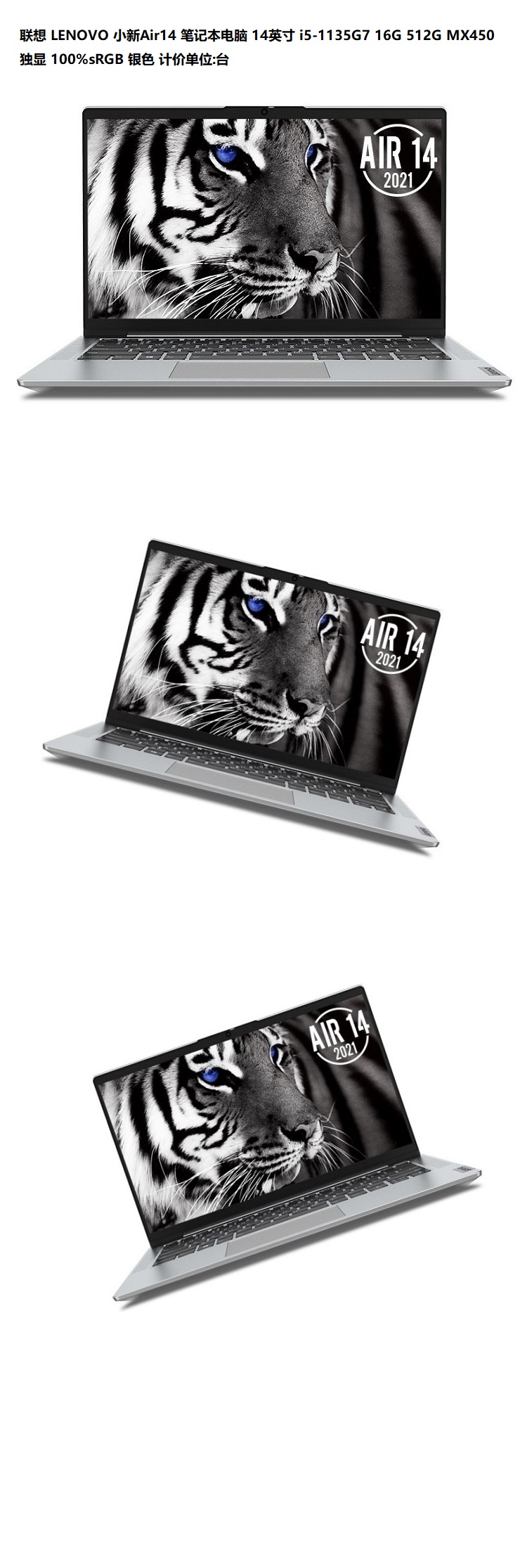 联想 Air14 便携式计算机 小新14英寸 i5-1135G7 16G 512G MX450独显 100%sRGB 银色